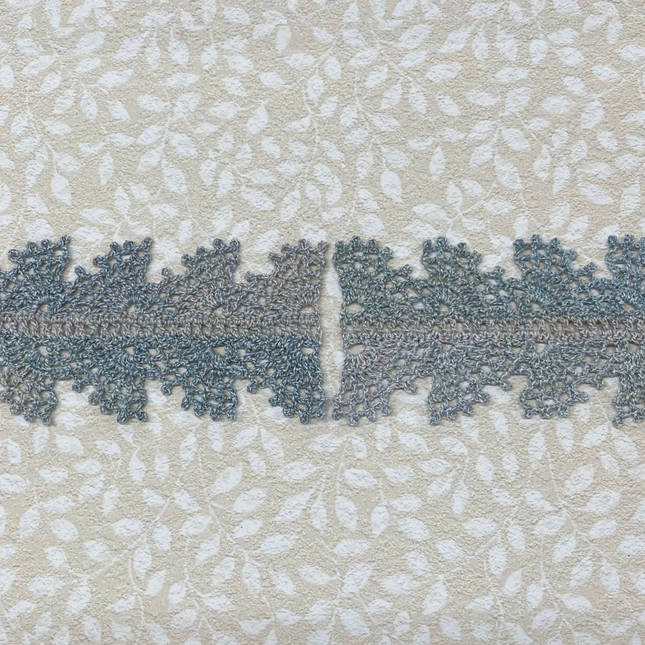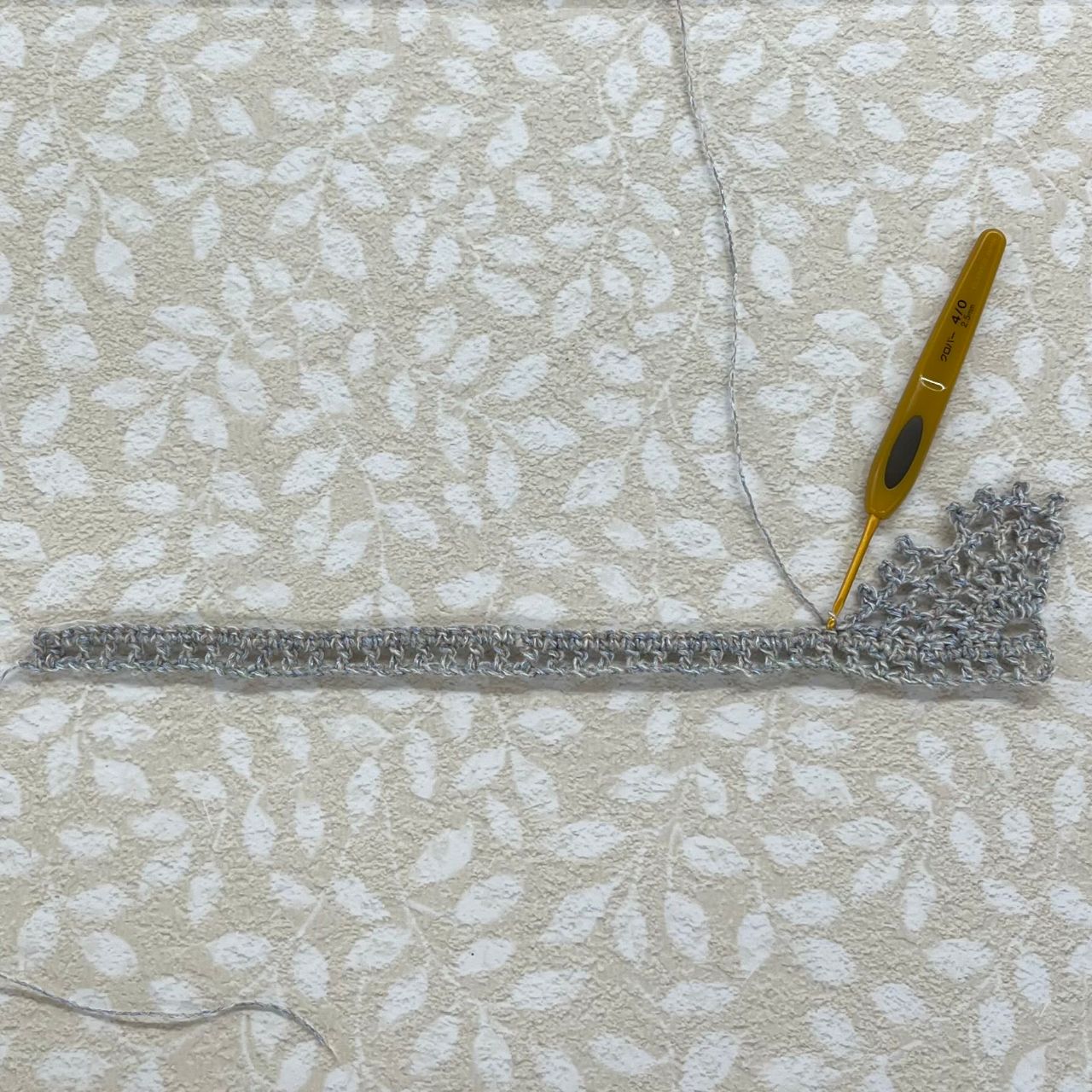 くさり編み、長編み、細編みで中心部から模様編みします。