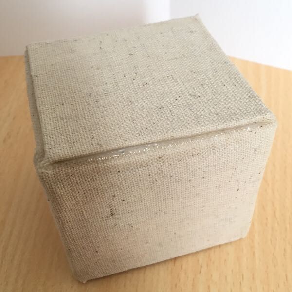 ⑤BOXの表に生地を貼っていきます。