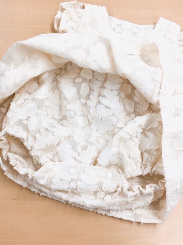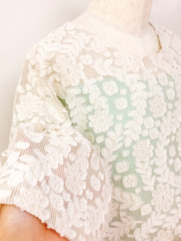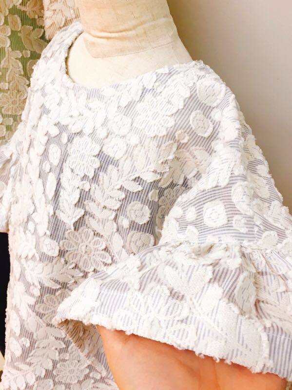 透け感のあるストライプの生地に刺繍の花柄ジャガードがとっても素敵!!