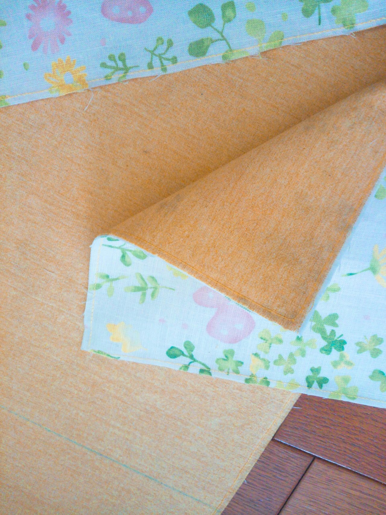 表地と裏地を、土台・ポケットとも裏どうしを合わせて、1㎝の所で縫い合わせます。
