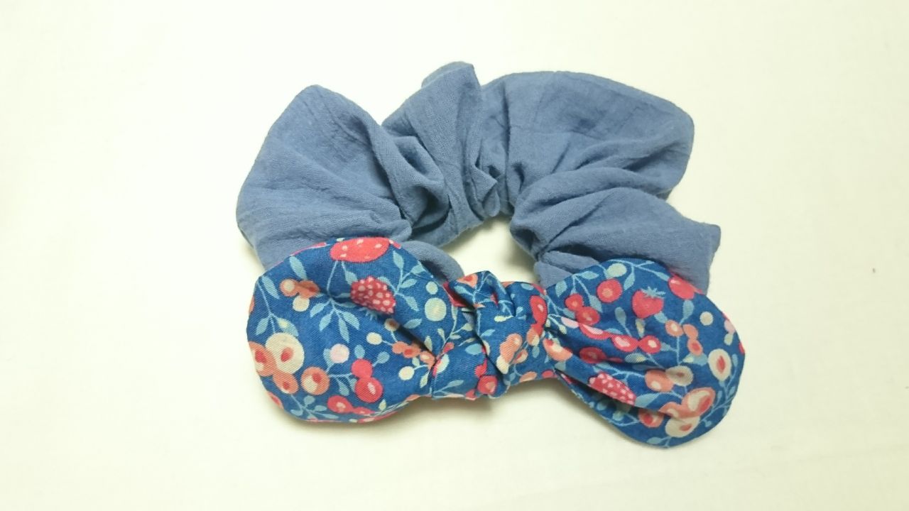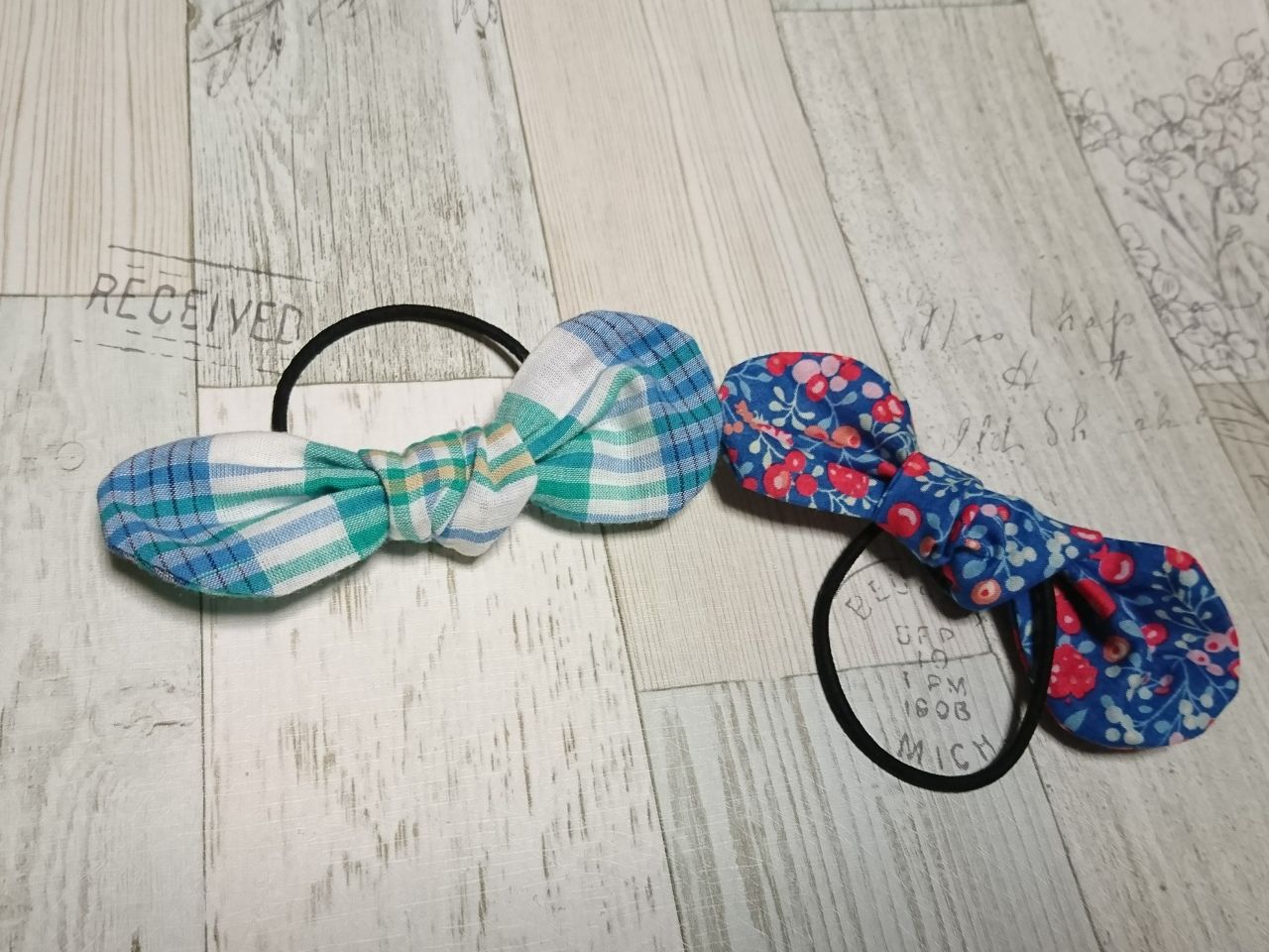 シュシュの作り方はもう知ってる方が多いと思うので、違う生地でリボン付きのシュシュにしてみました!