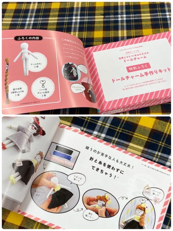 ドールボディと刺繍糸(髪の毛用)とハート型のチャームがついたキットです!