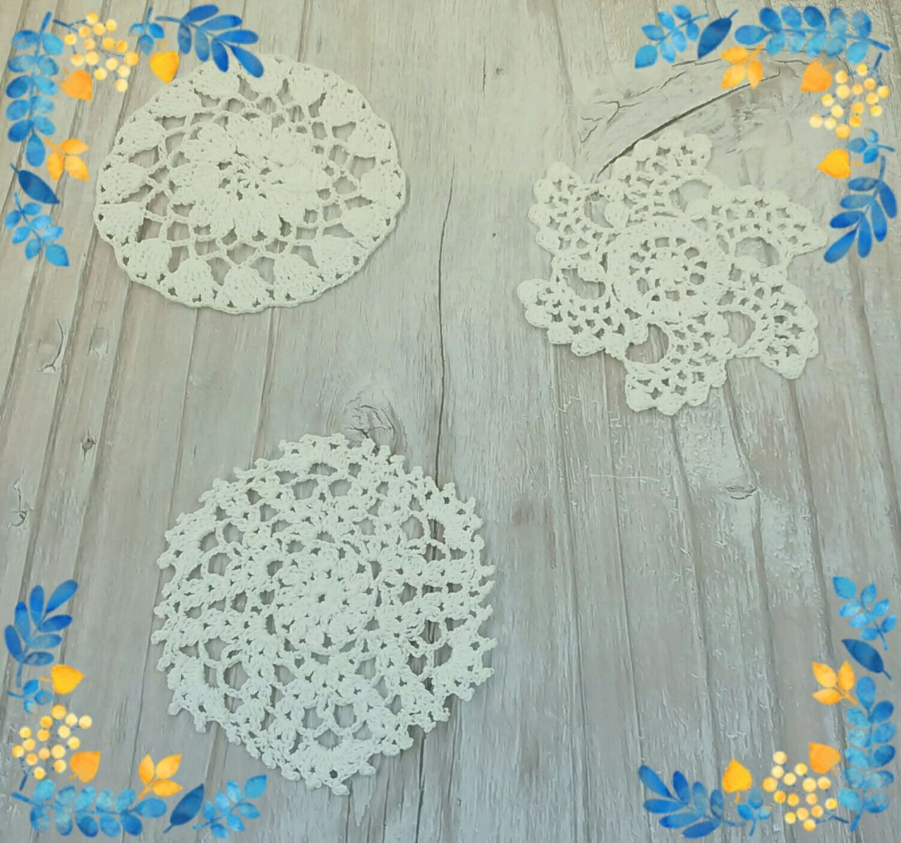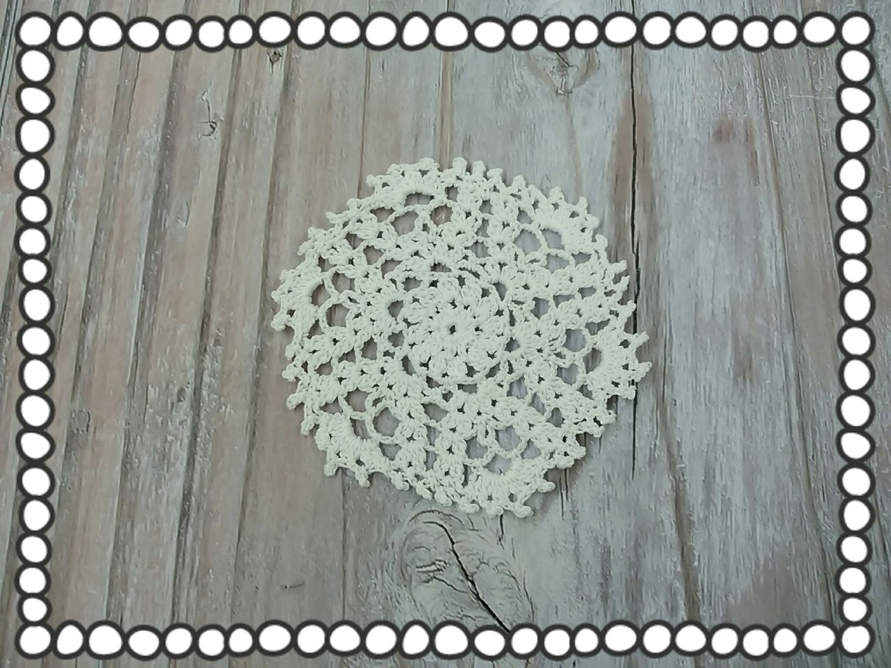先日ブログで紹介しました店長作品に引き続き、地下1階の妖精はレース編み初めてさんも、達人さんも楽しめる様にと『コースター』を編みました。