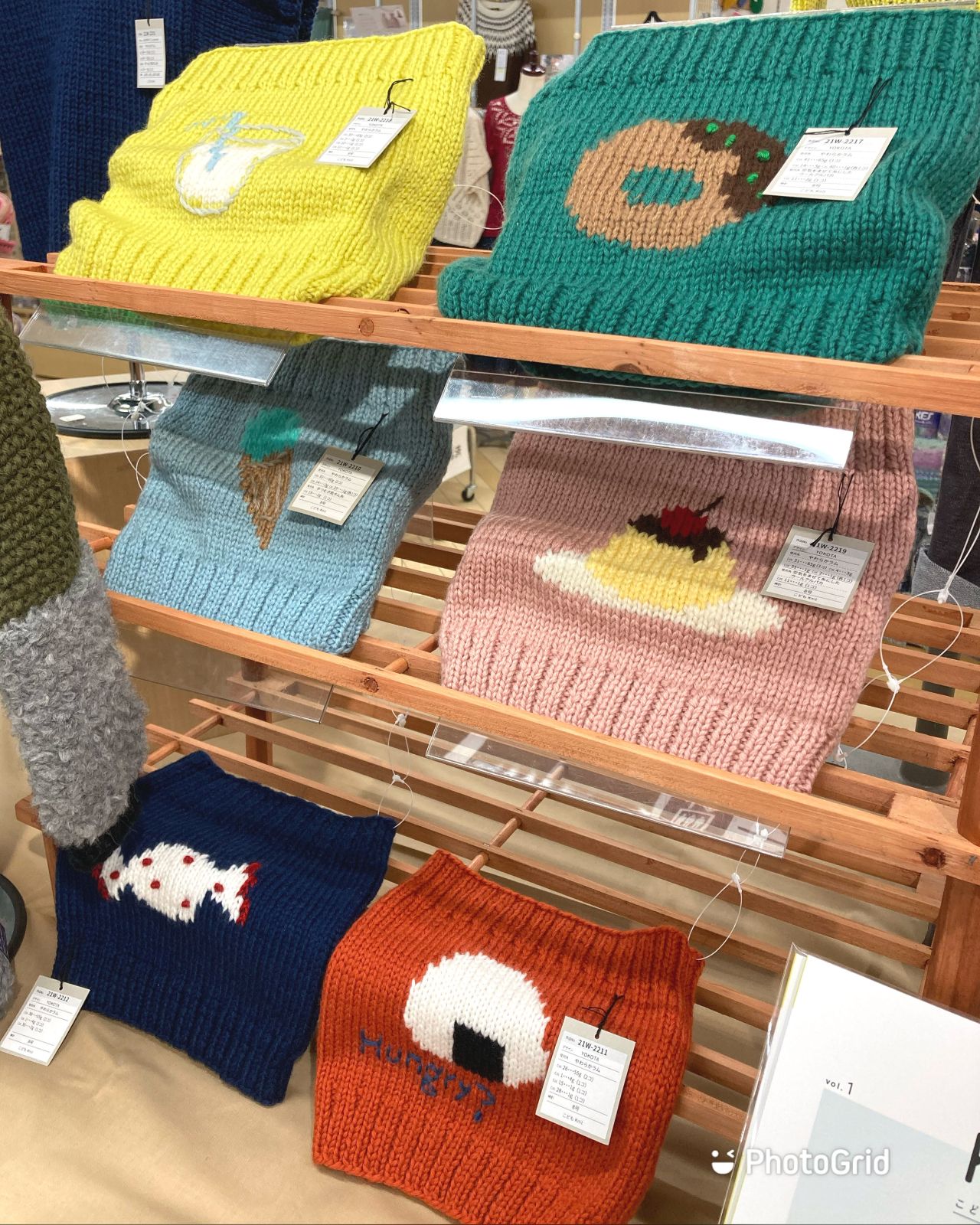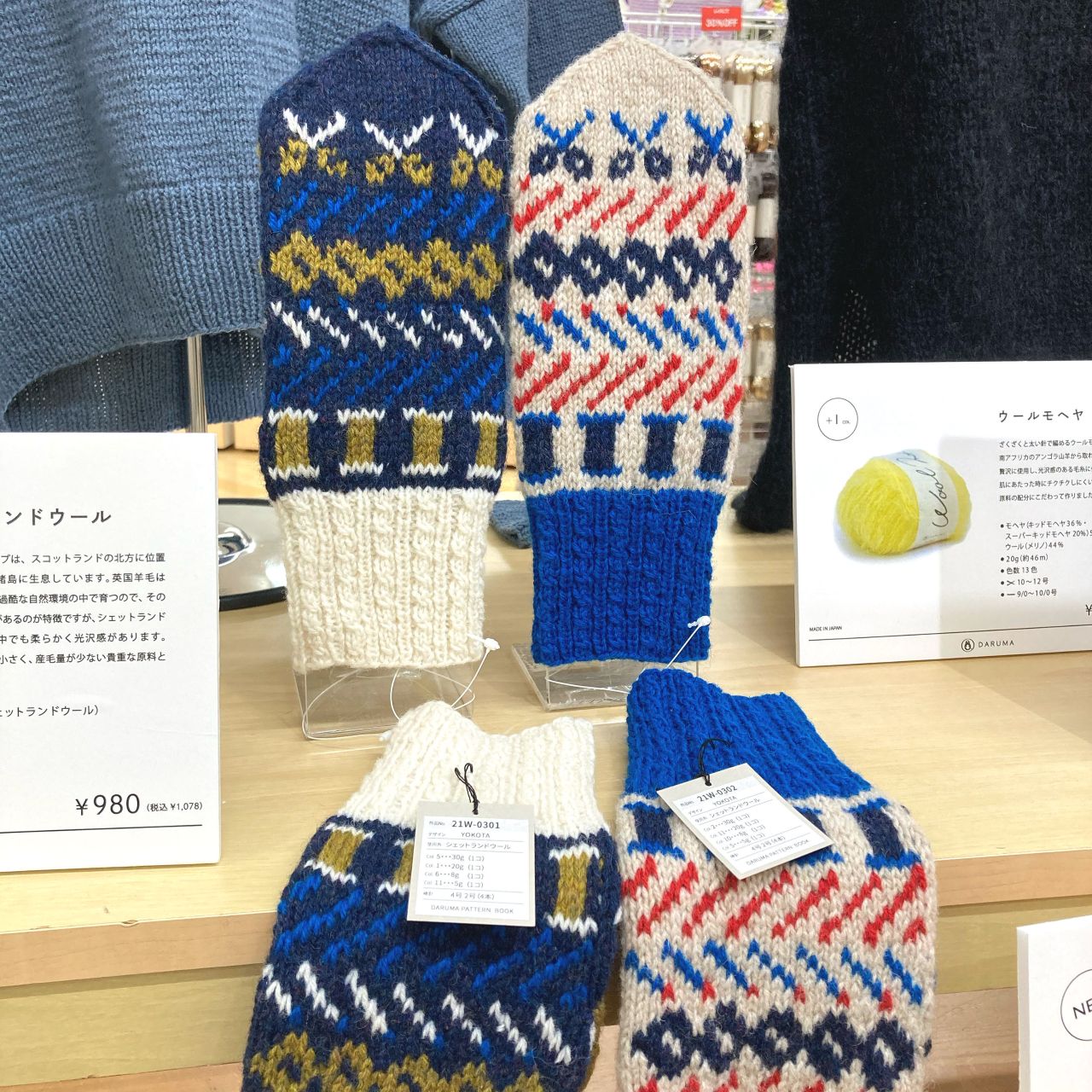 表紙作品の"編み物道具"柄の編み込みミトンなどがございます♪