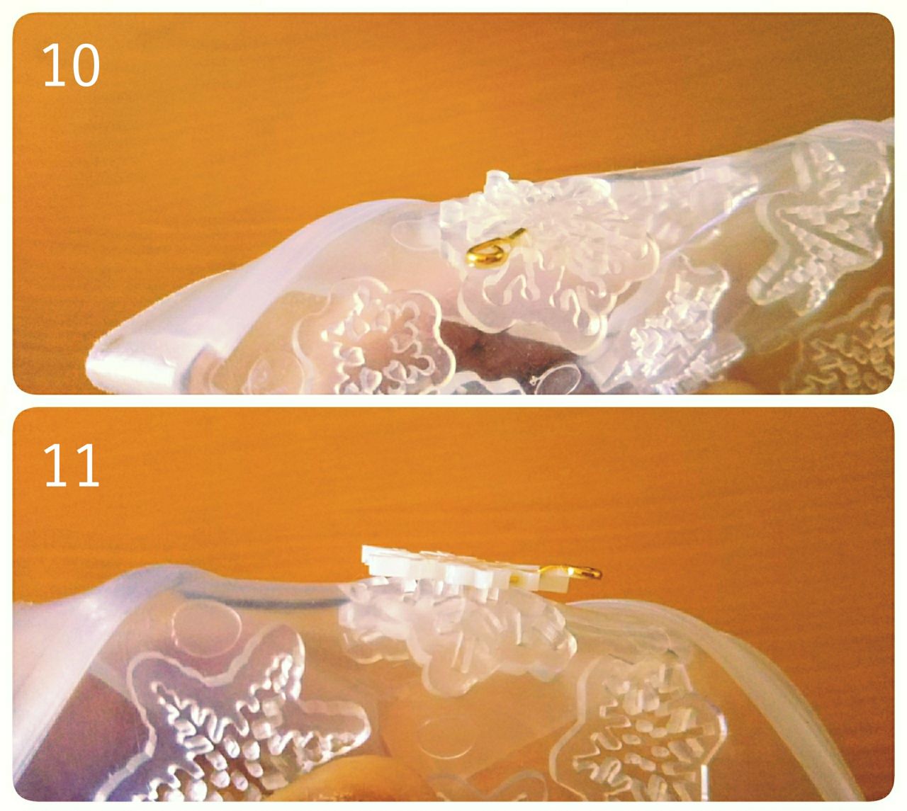 ソフトモールド 雪の結晶 の場合、型がとても繊細で、通常のヒートンは差し込む事が困難です。