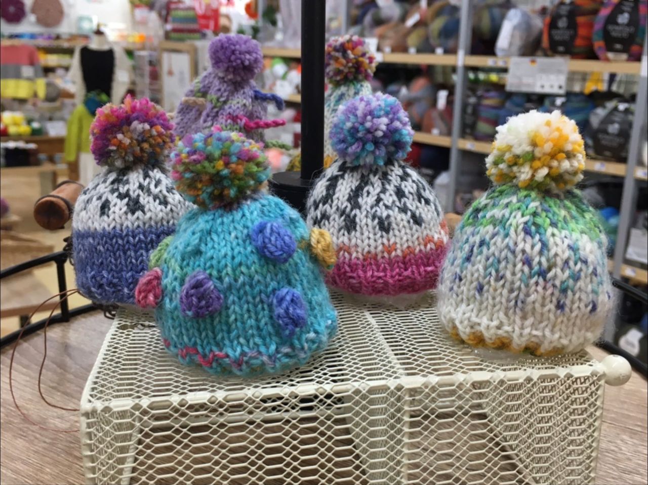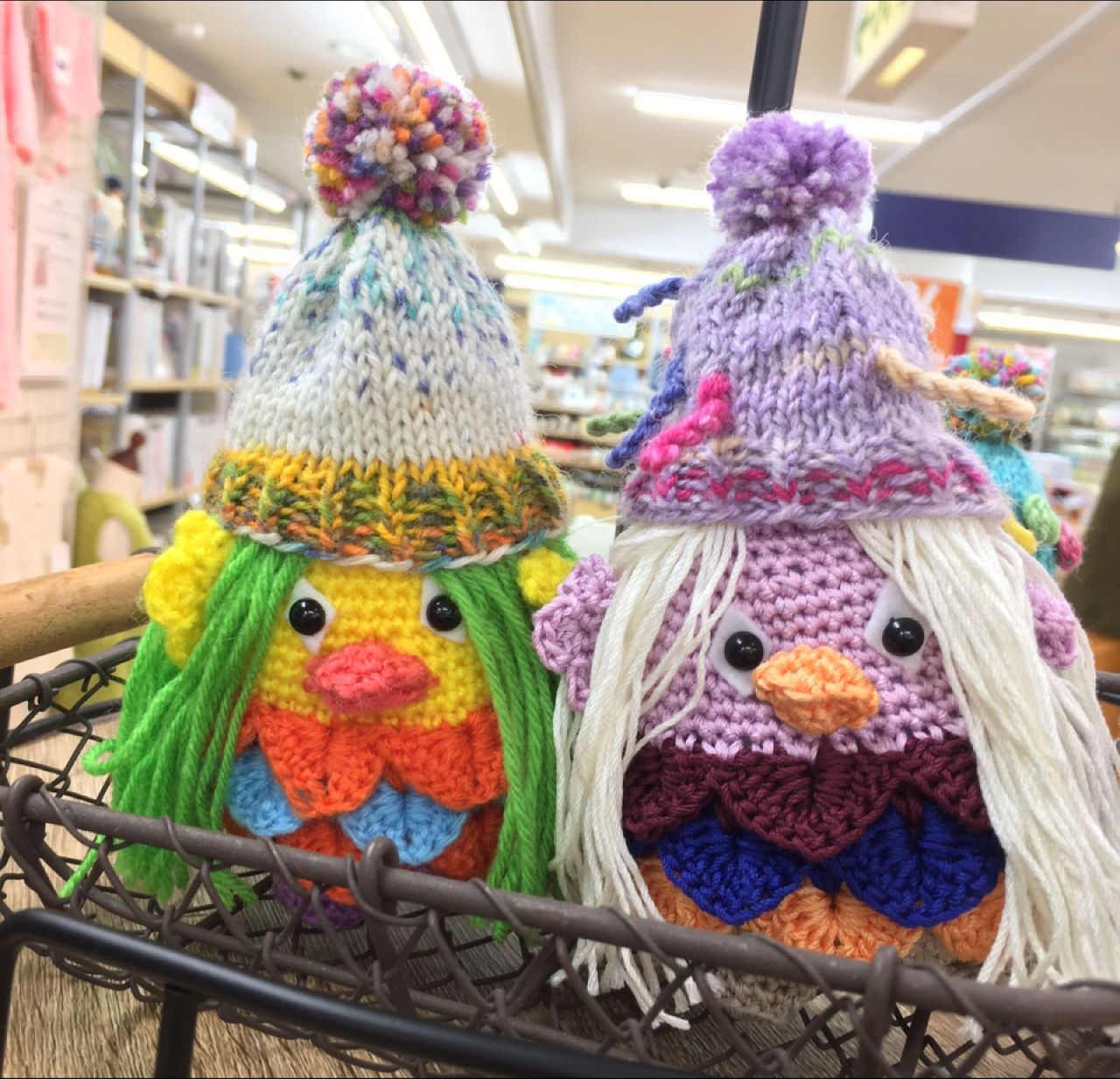 アマビエさんの帽子は、スタッフが編んでくれたミニ帽子です。