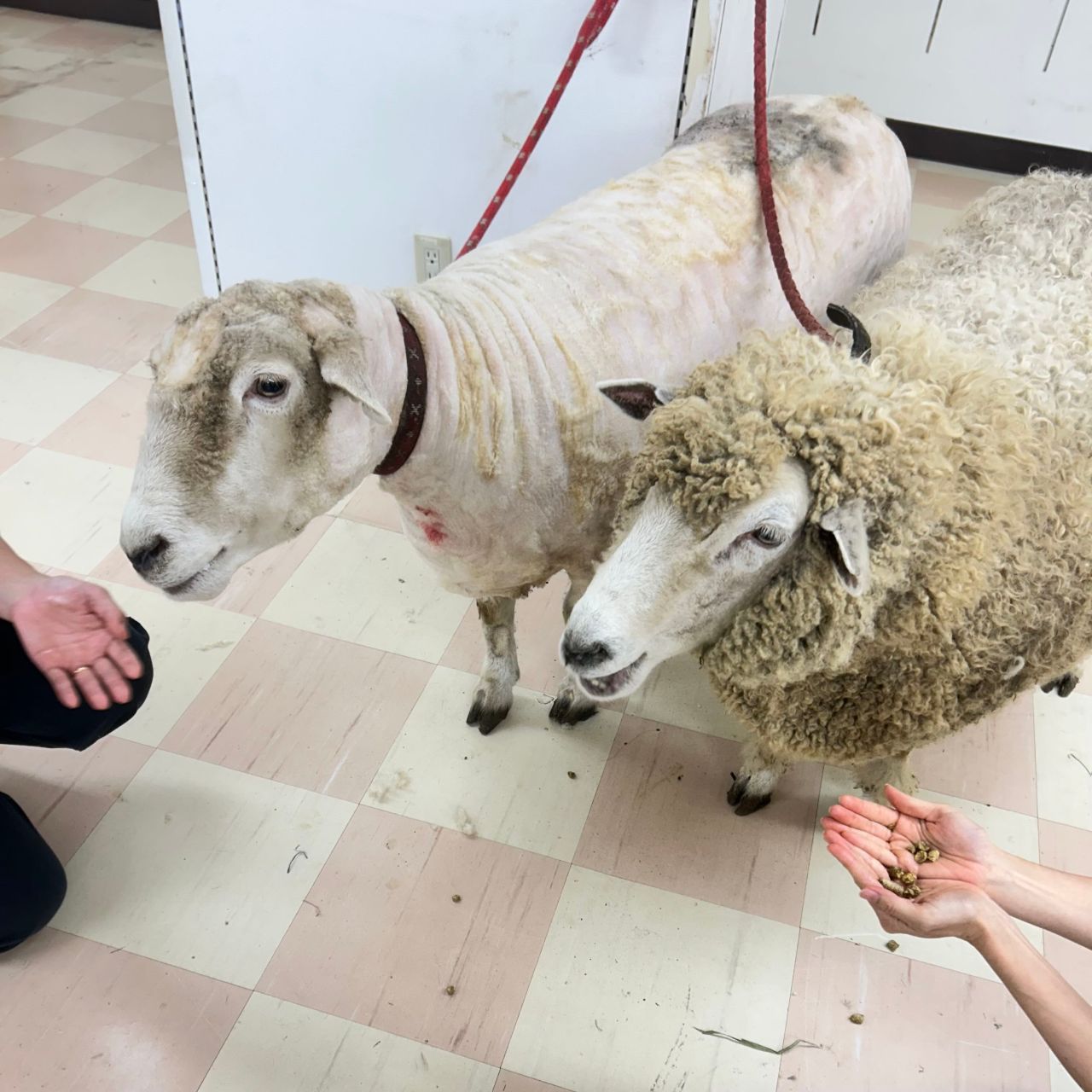 毛刈りをする時ひつじちゃんがお腹いっぱいだと苦しくなってしまうので、毛刈り前はごはんを控えて備えるそう。