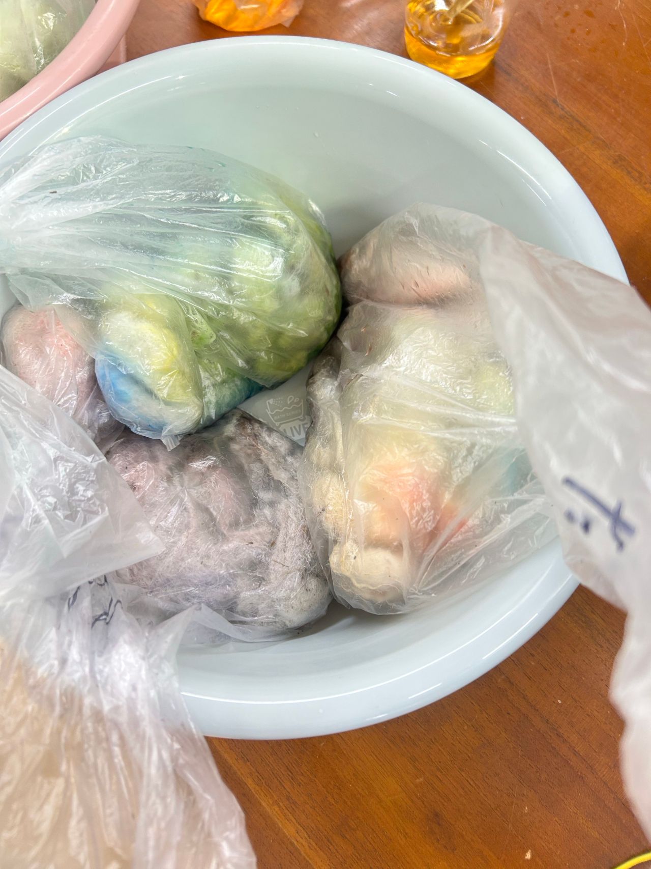 その後あらかじめ準備してあった洗浄済みの羊毛に染料を注いで自由に染めます。
