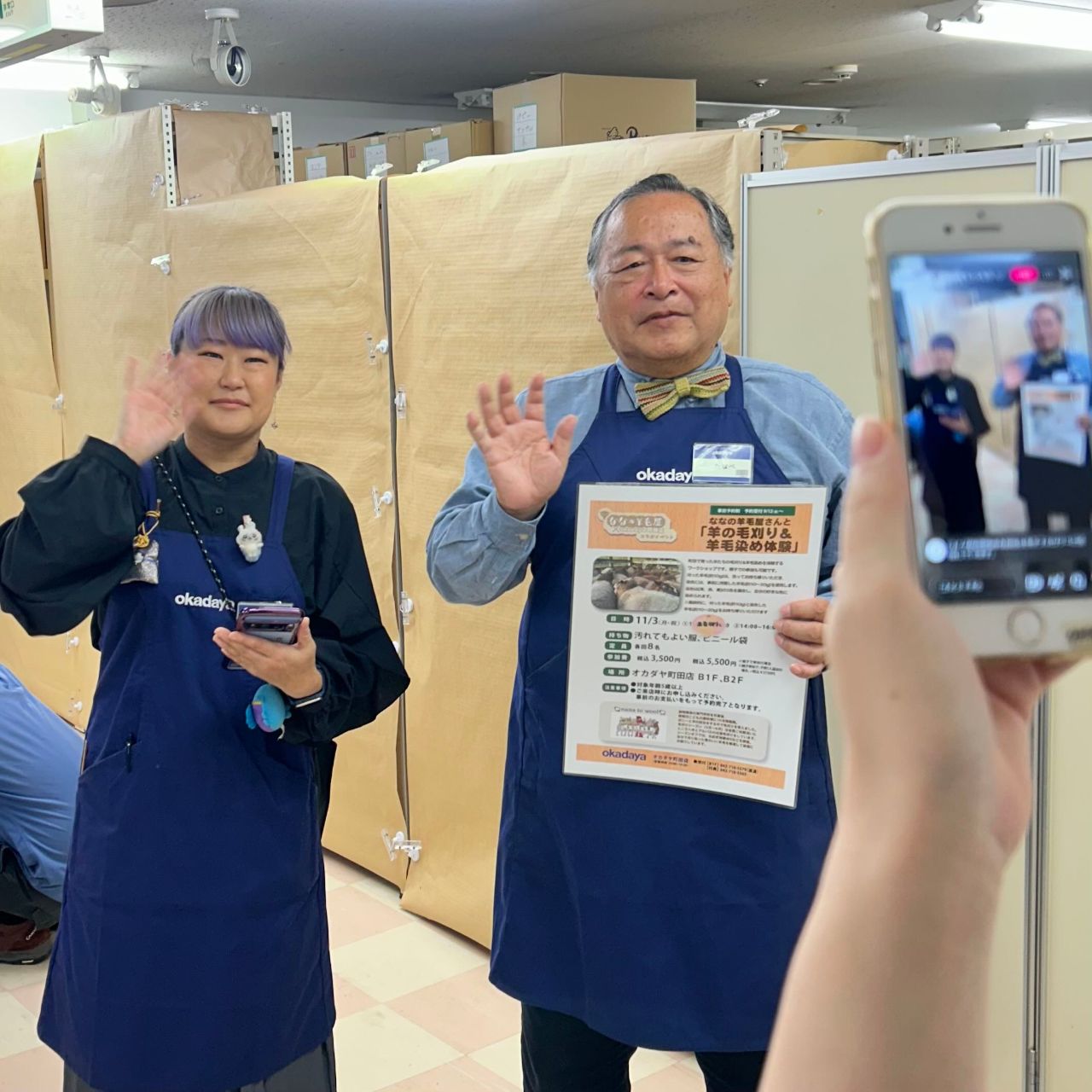 今回もこの体験に密着させていただき、日本最大級の毛糸売り場を持つオカダヤ町田店で、編み物講習会はもとより手紡ぎ講習会、そして今回の毛刈り&羊毛染色体験などイベントを通じて皆さまに羊をより身近に感じていただき、これからももっと羊や羊毛、毛糸の楽しさをもっと発信していきたいなと思いました。