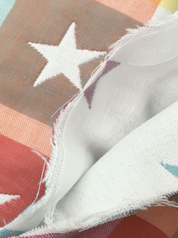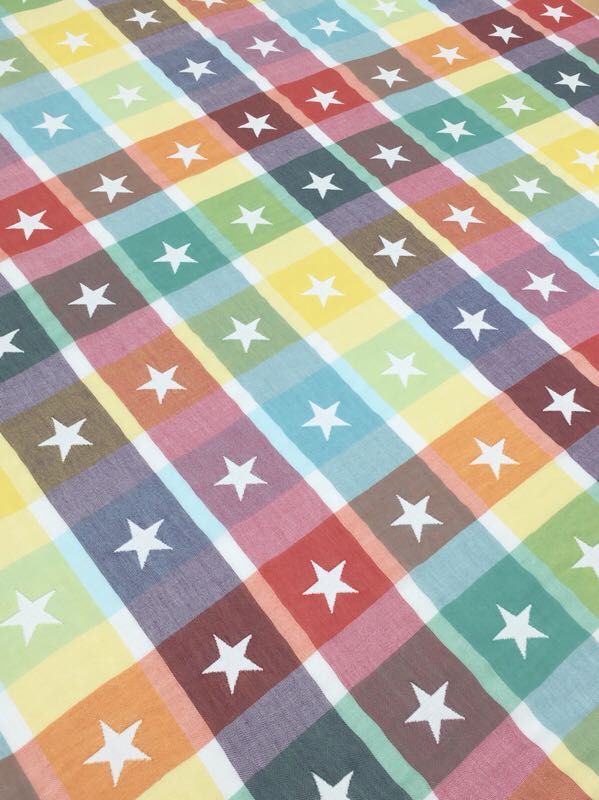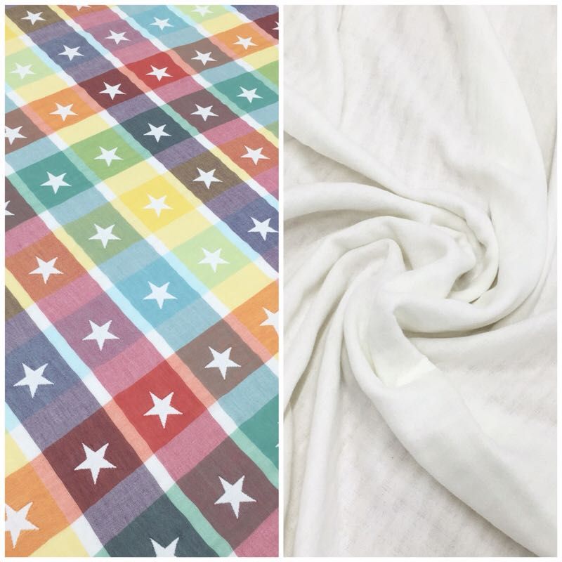 5重ガーゼの星柄生地と無地の6重ガーゼ生地が入荷しました〜(*^o^*)