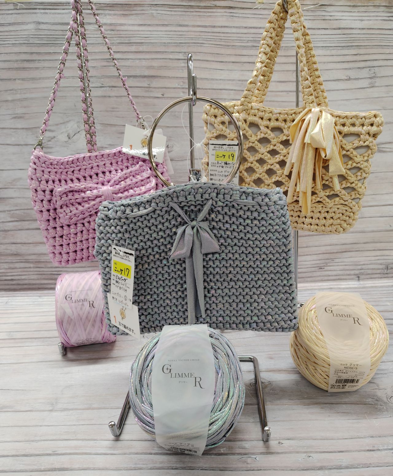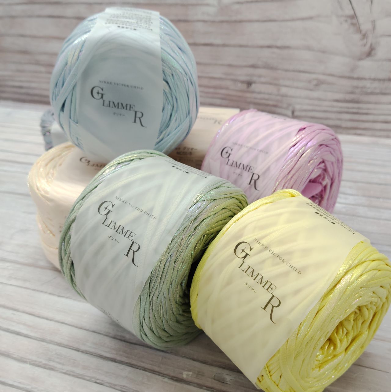 また、こちらのグリマーは昨夏登場したキラキラなTシャツヤーン。