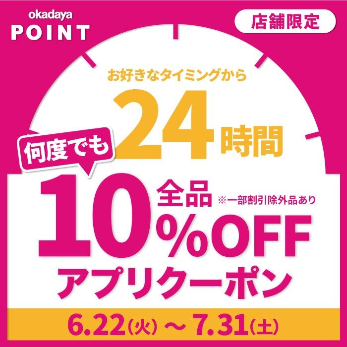 24時間限定オカダヤポイント会員10%OFFクーポンを配布いたします!