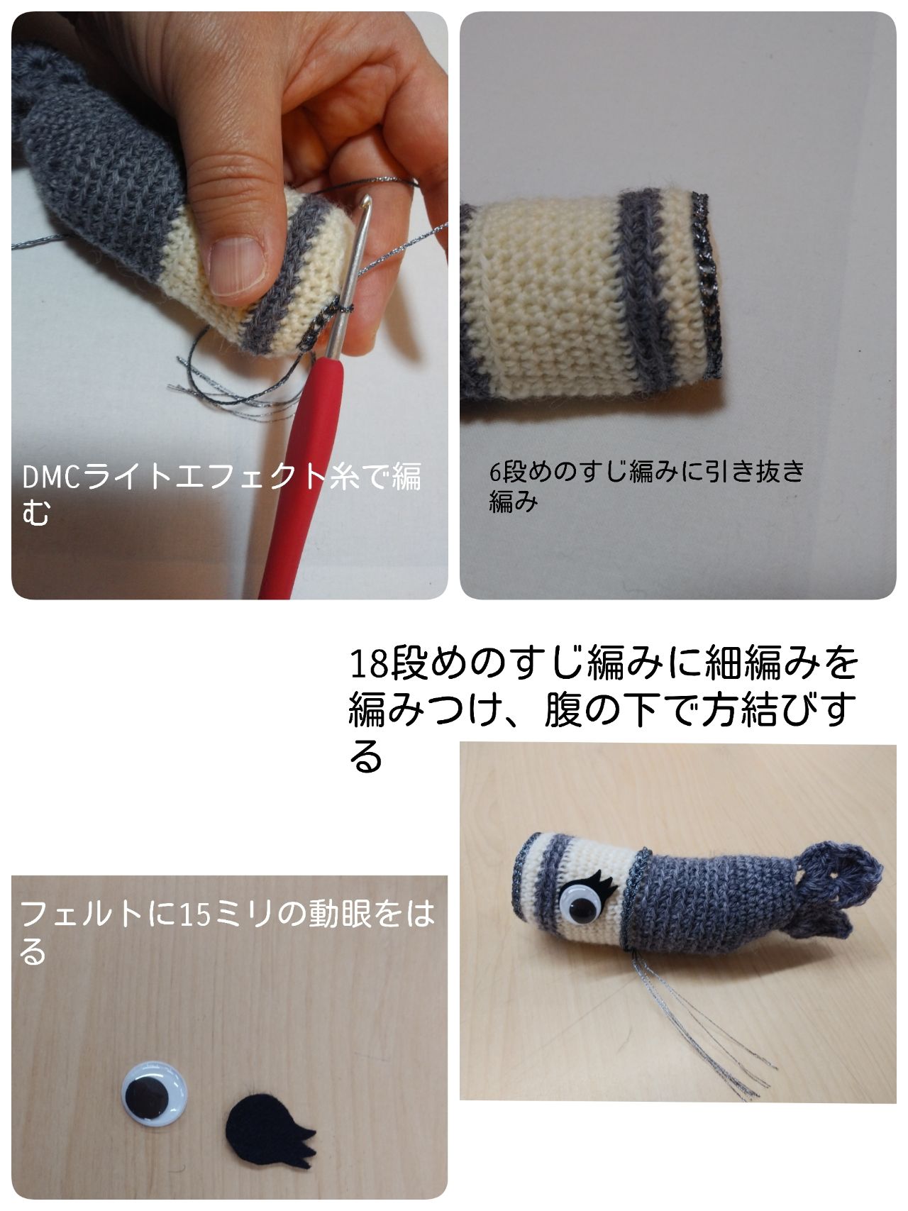 簡単に編めるように胴体は基本細編み、尾びれは長編み&くさり編みで編んでいます。