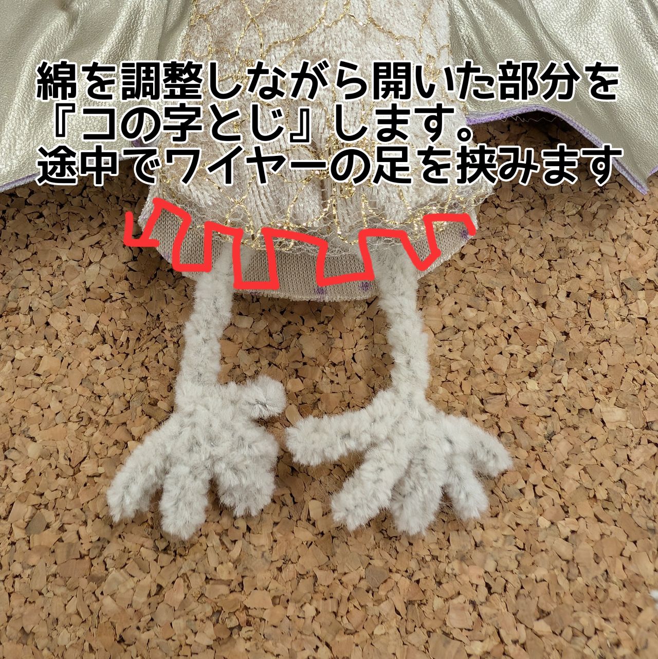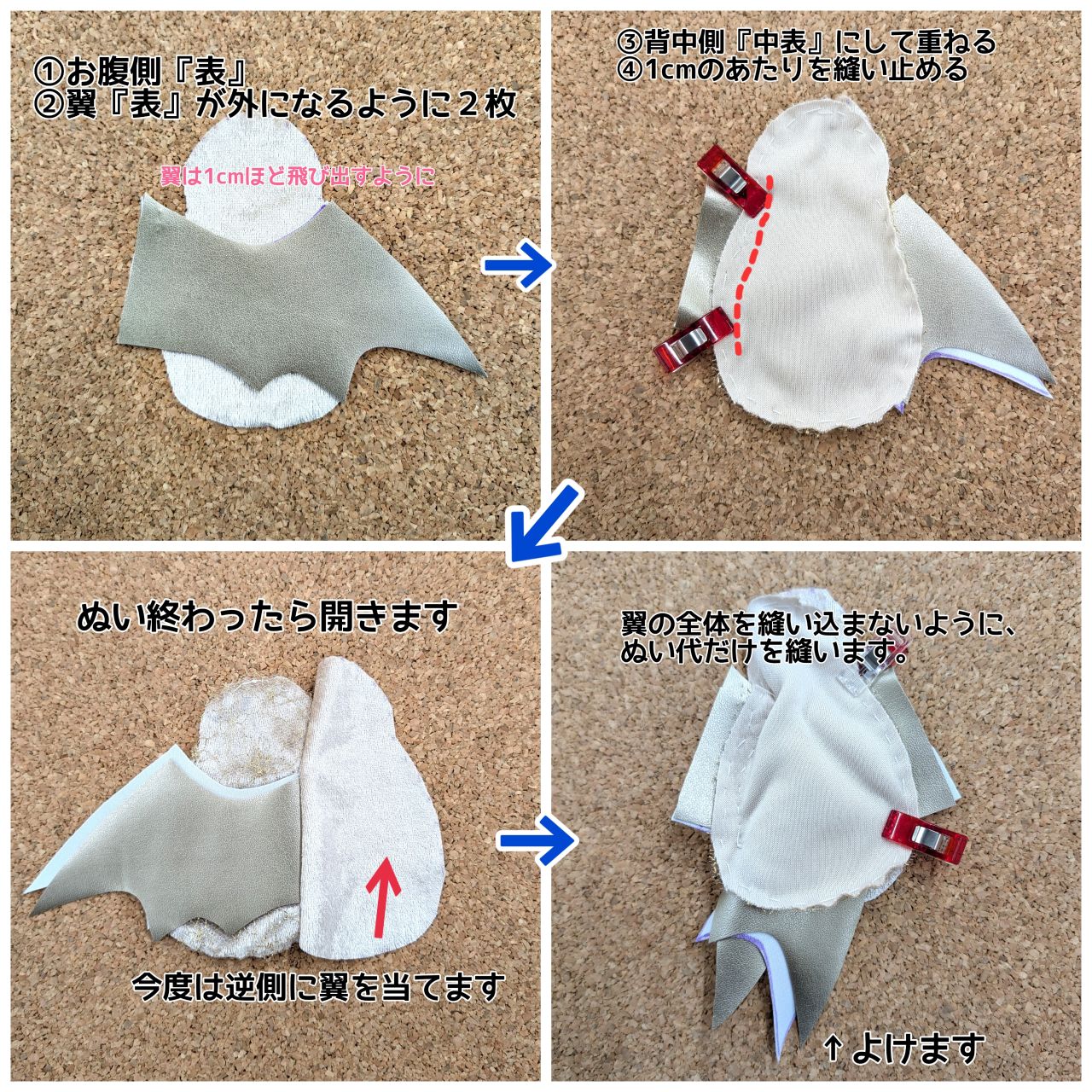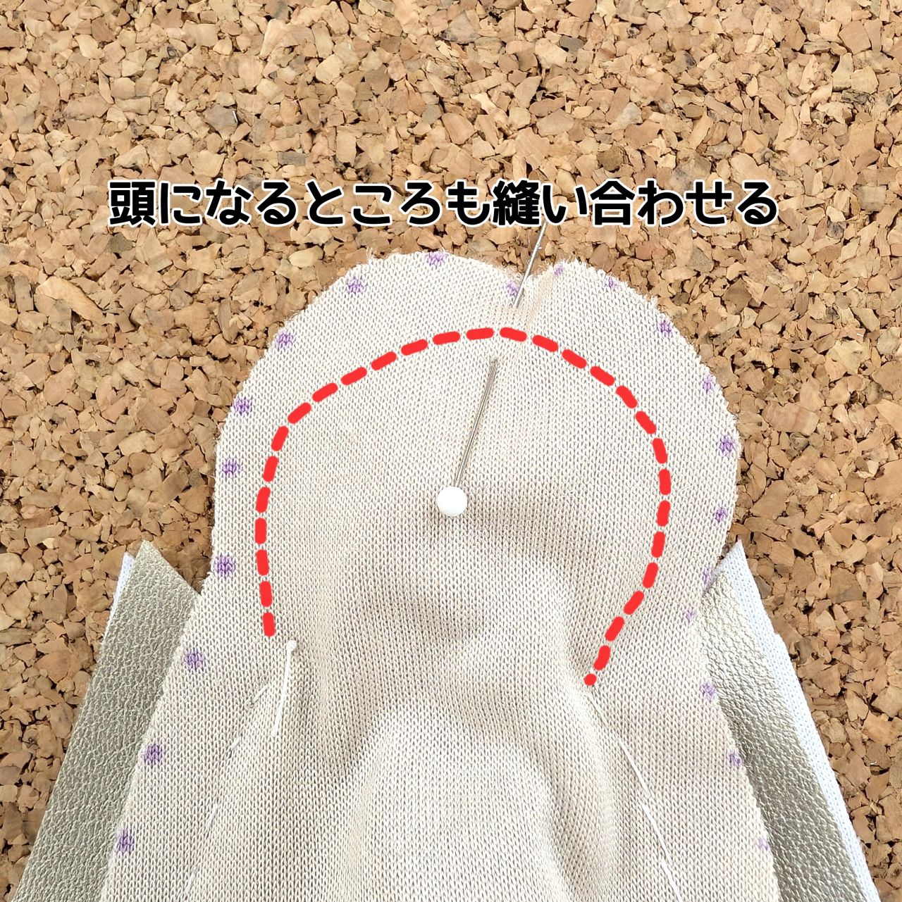翼が縫えたら残っている頭の部分も縫い合わせます。