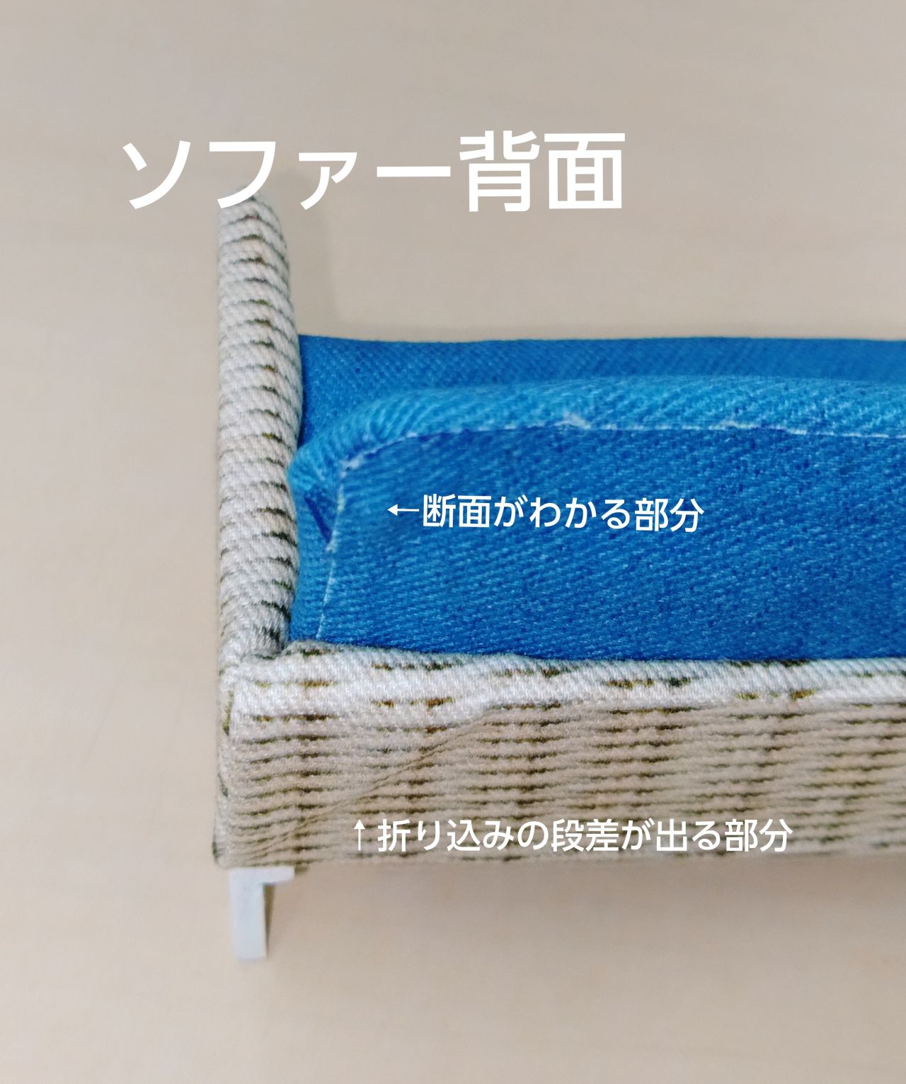 ソファーの背面の生地は少し後ろ側が見えるので、