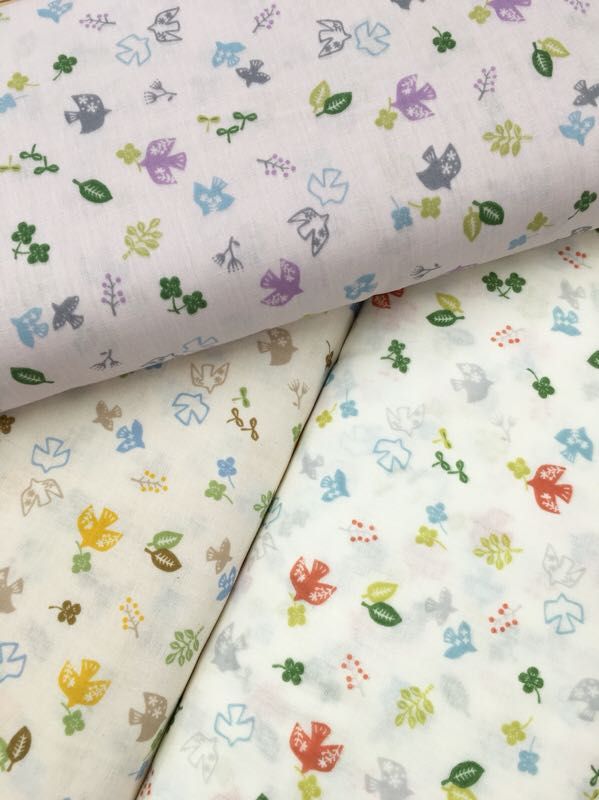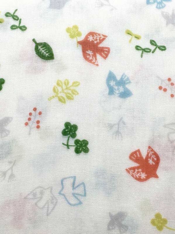 鳥柄のガーゼ生地。
