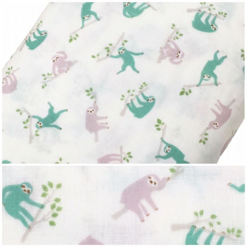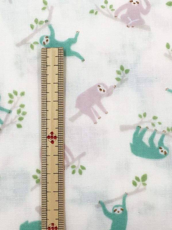 何とも言えないゆるさがかわいいナマケモノ柄のガーゼ生地。