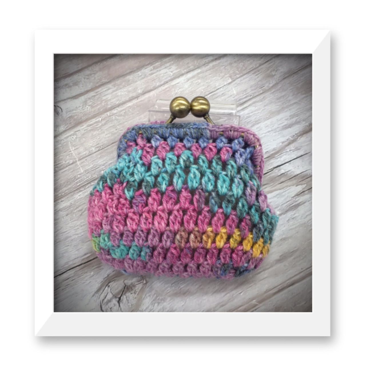 同じ糸で編んだがま口