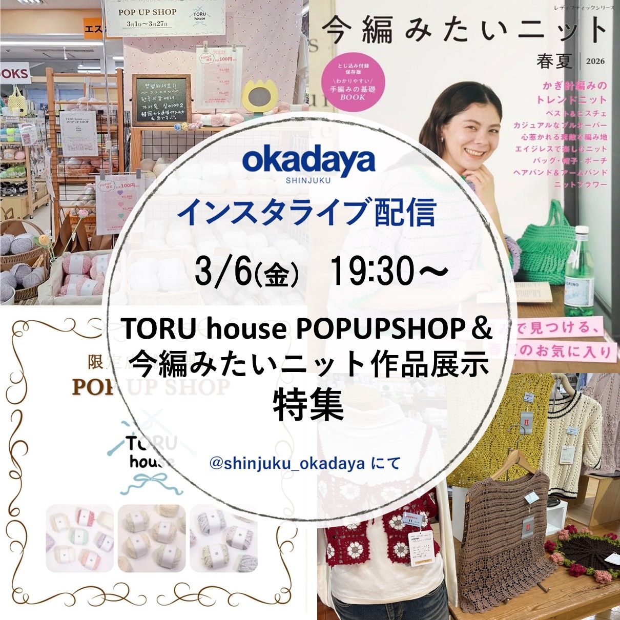 3/6(金)インスタライブのお知らせ『TORU house POP UP SHOP&今編みたいニット作品展示特集』