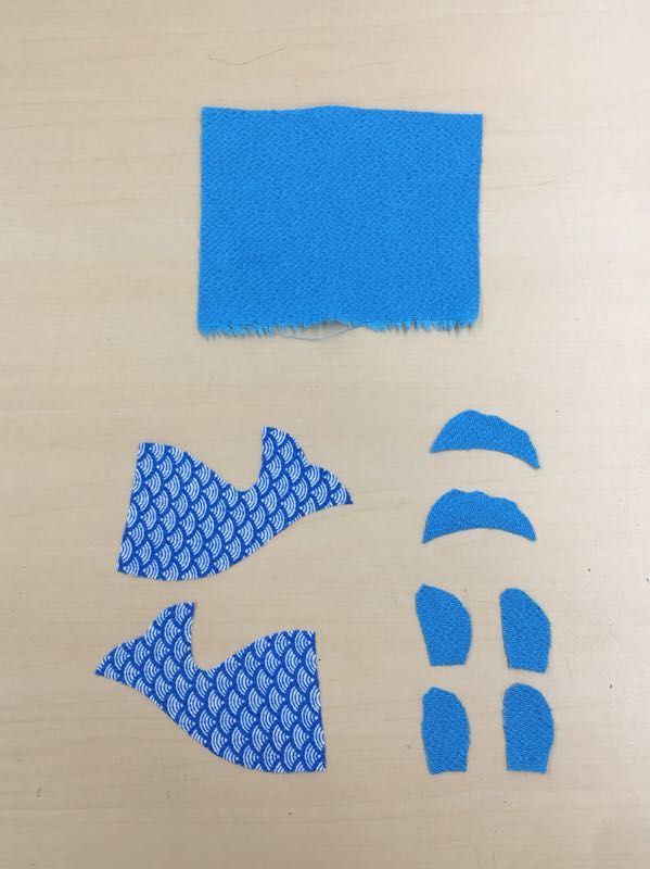 背びれと胸びれを中表にして縫います。(綿は入れません)