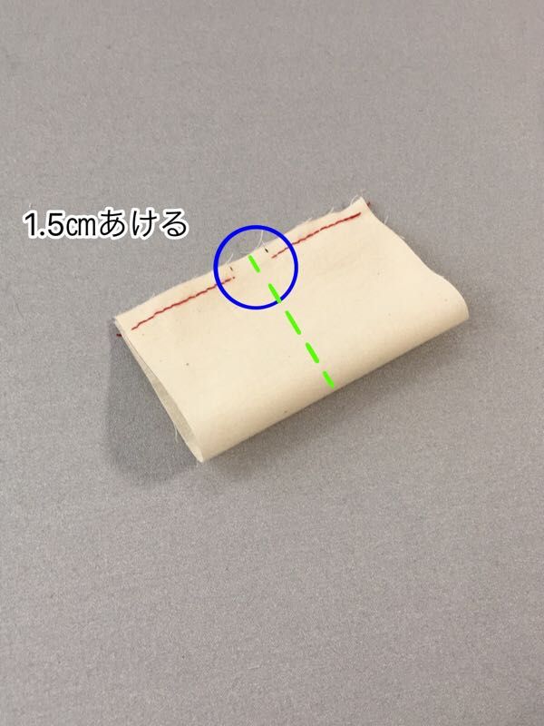 紐が出るところを1.5㎝残して縫います。