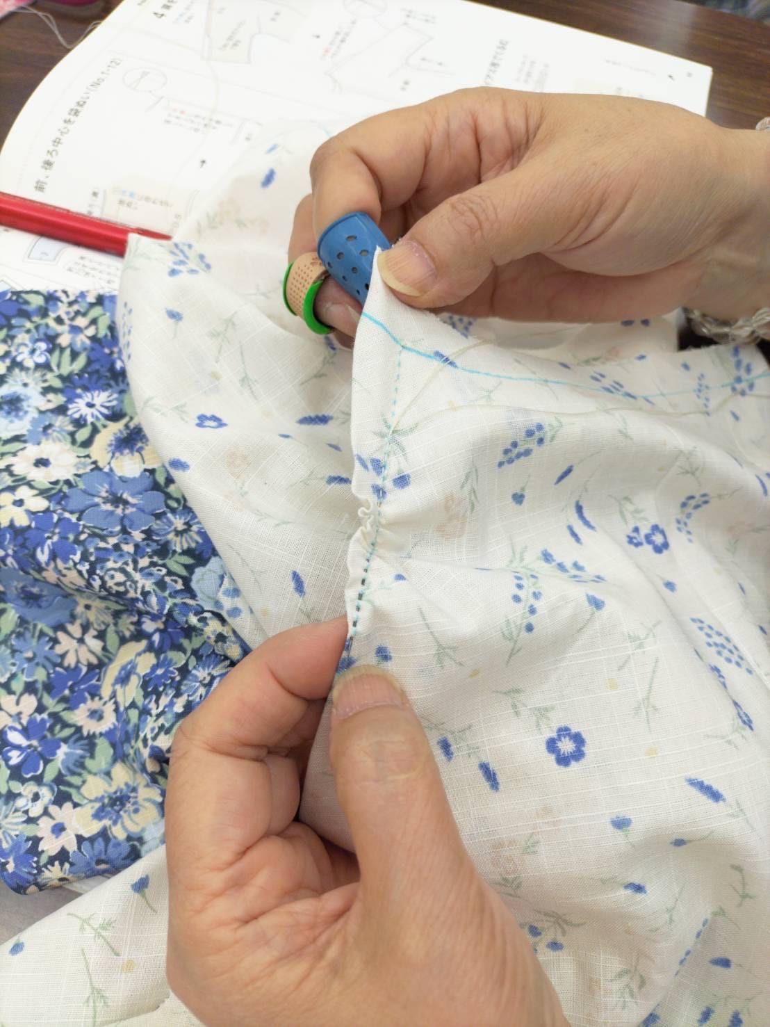 高橋先生のデザインの縫いやすい、国産のスラブ生地を使って、タックチェニックを作ります。