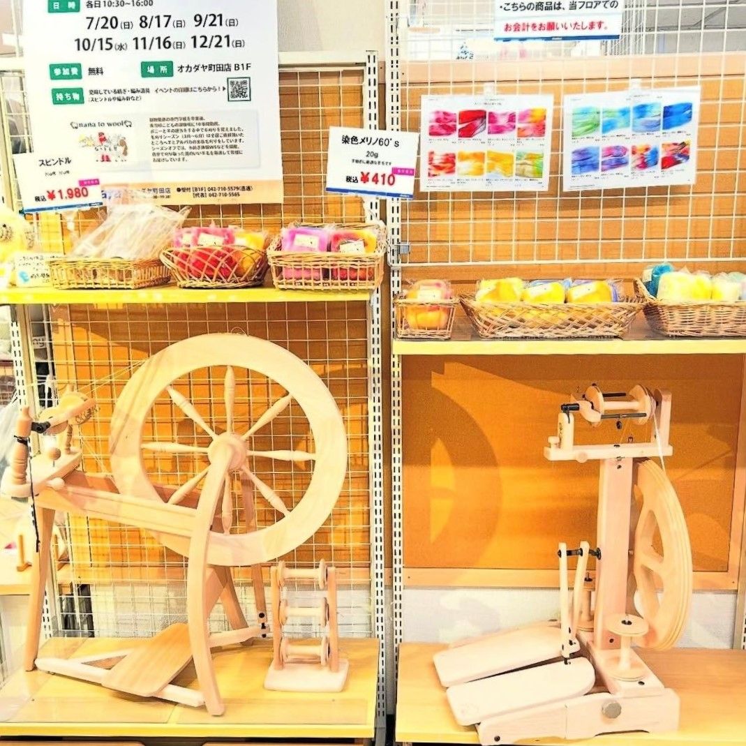 なんと、町田店で「スピンドル」と「手紡機(スピニングホイール、紡ぎ車、糸車)」の取り扱いが始まりましたー!