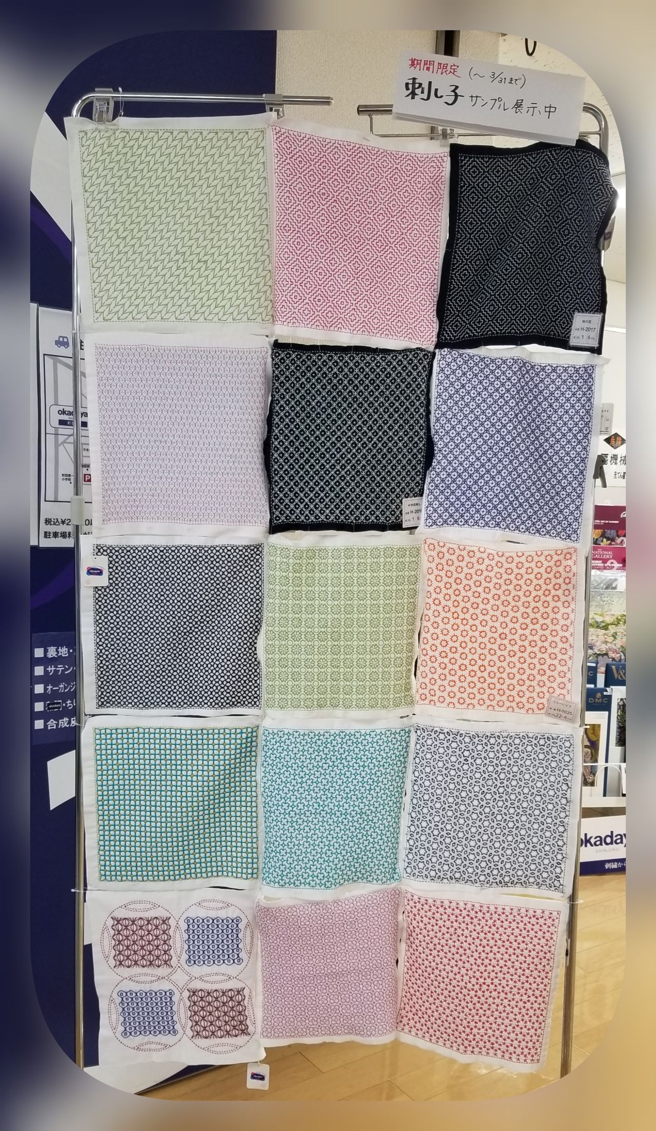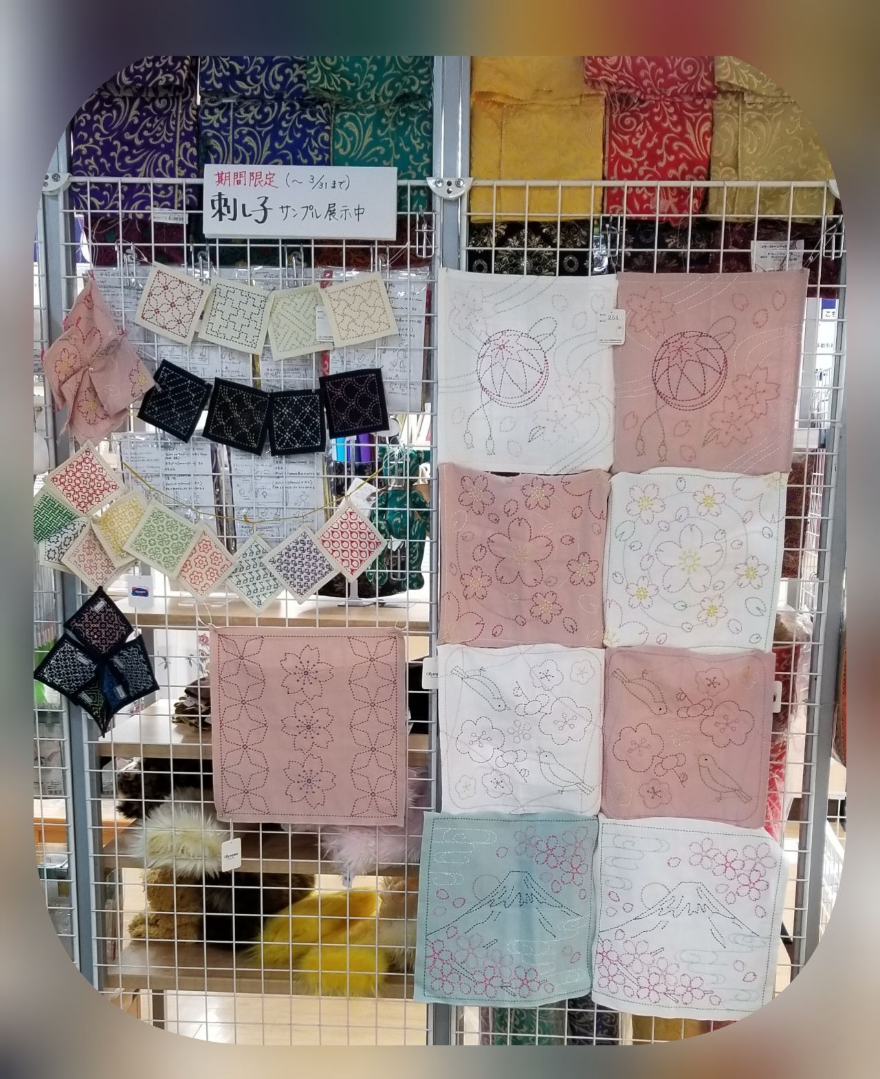 桜の季節にちなんで、桜の刺し子のキットを集めて