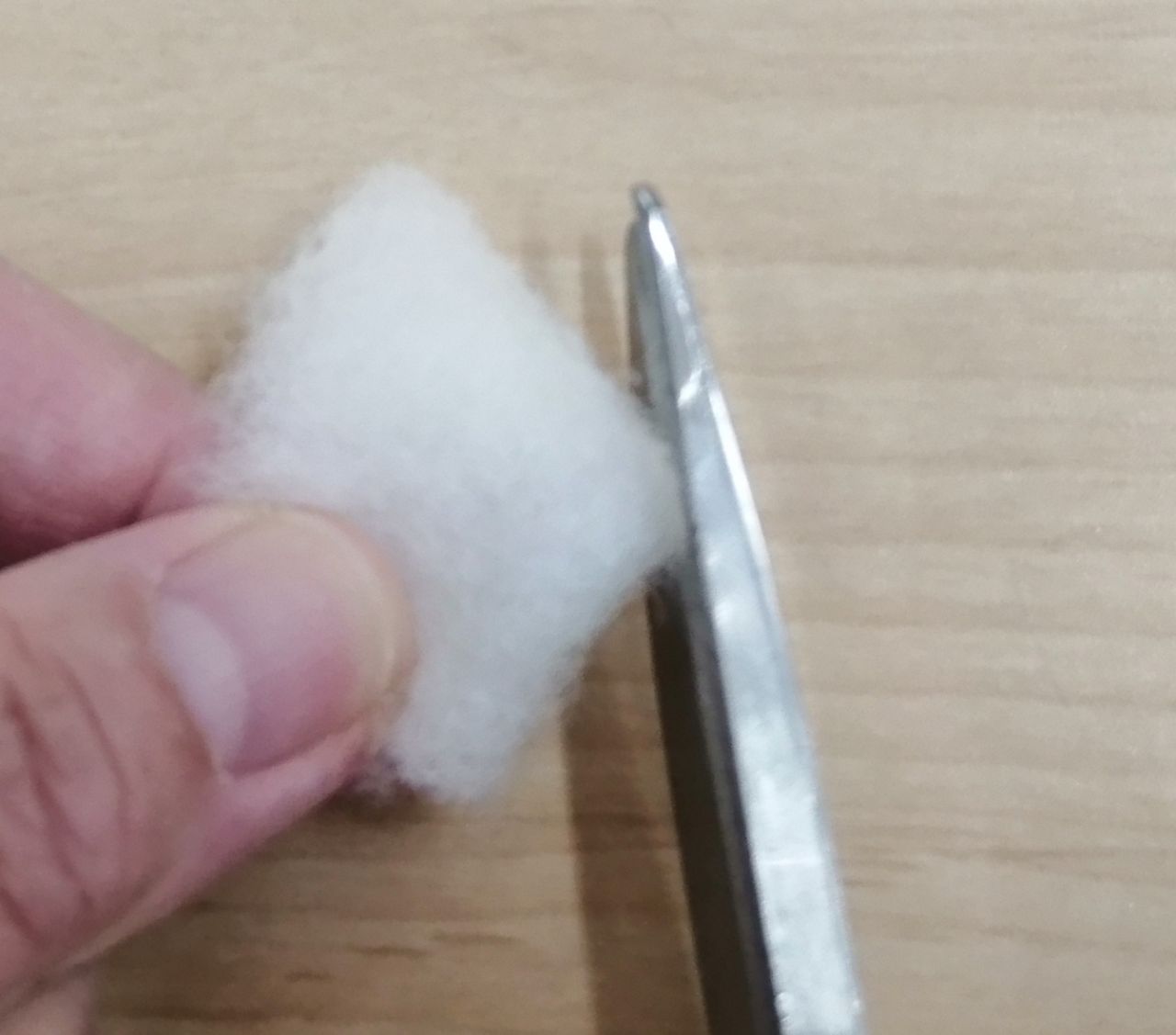 キルト芯はメジャーの大きさに切ります。今回は薄めのキルト芯だったので4枚にしましたが、2枚でも○