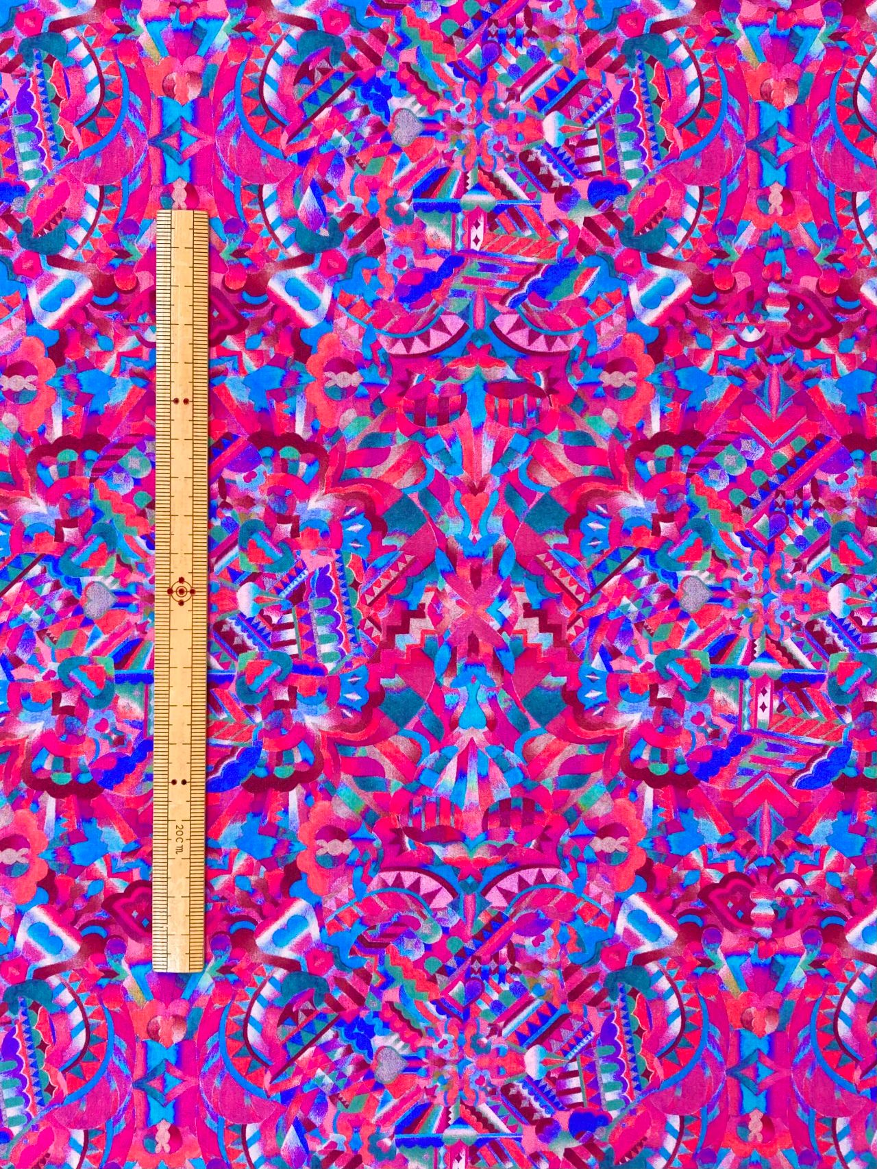 サイケデリックな色彩と線密で、幾何学模様を組み合わせた独創的なデザインになっています。