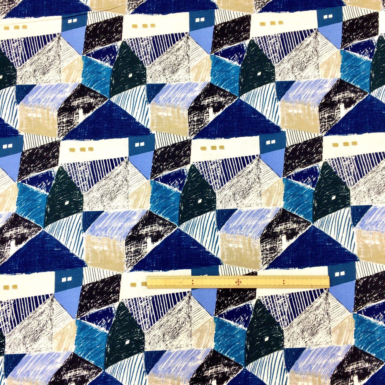 『風景画を飾るように生活を彩る布』をコンセプトに、空、山、街など日常の風景を自由にのびのびとした線で構成し、模様に落とし込んだデザイン。