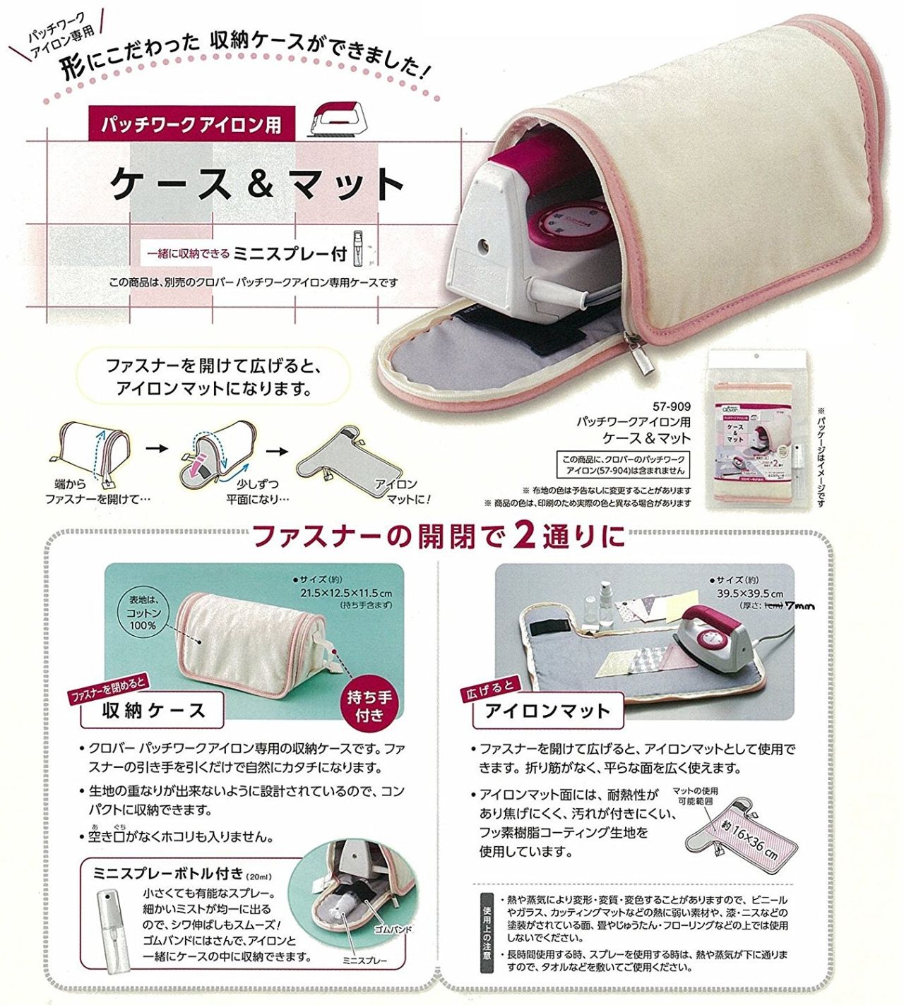 ケースを開くとアイロンマットとして使える