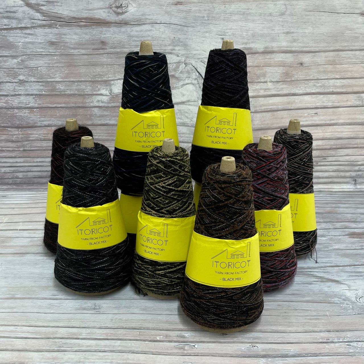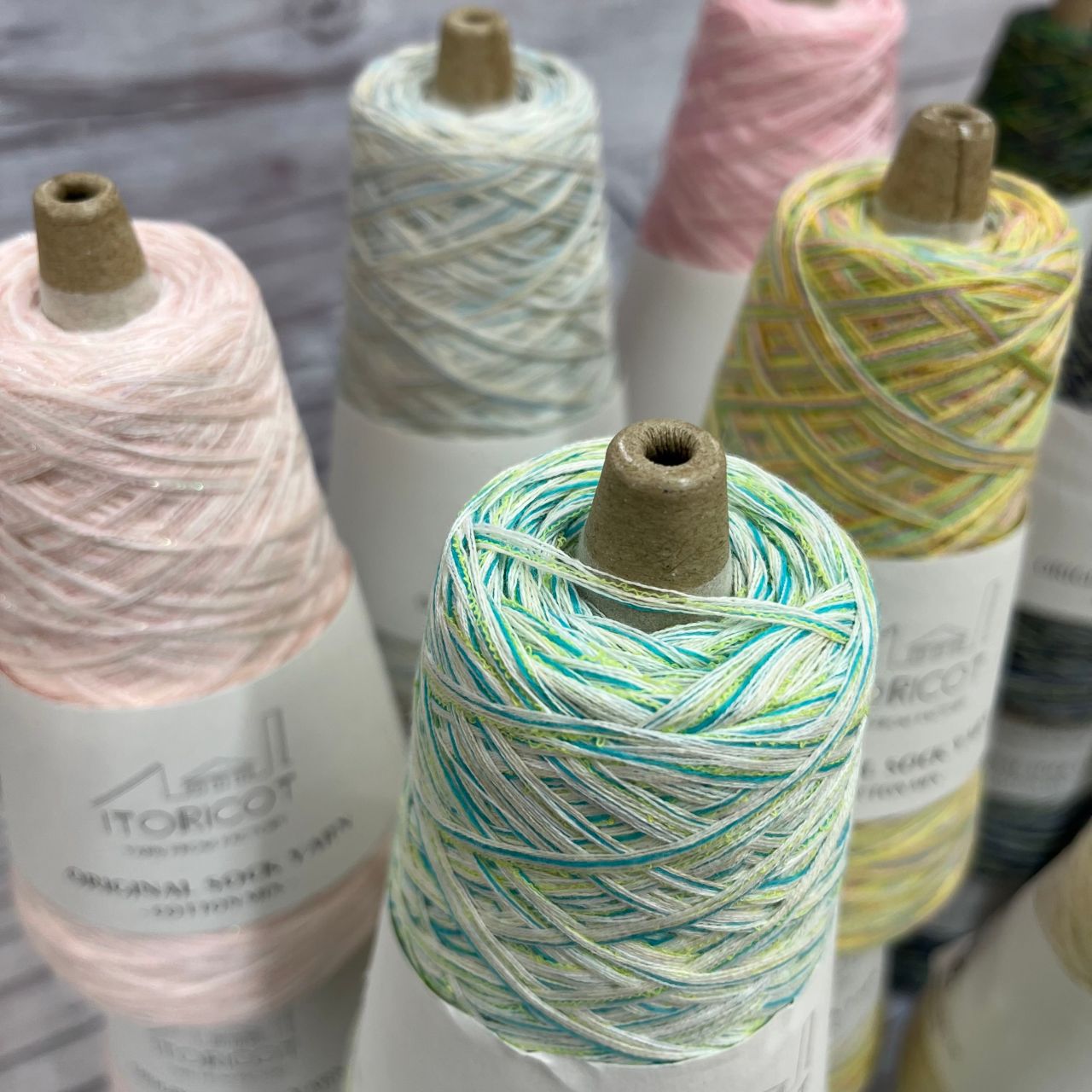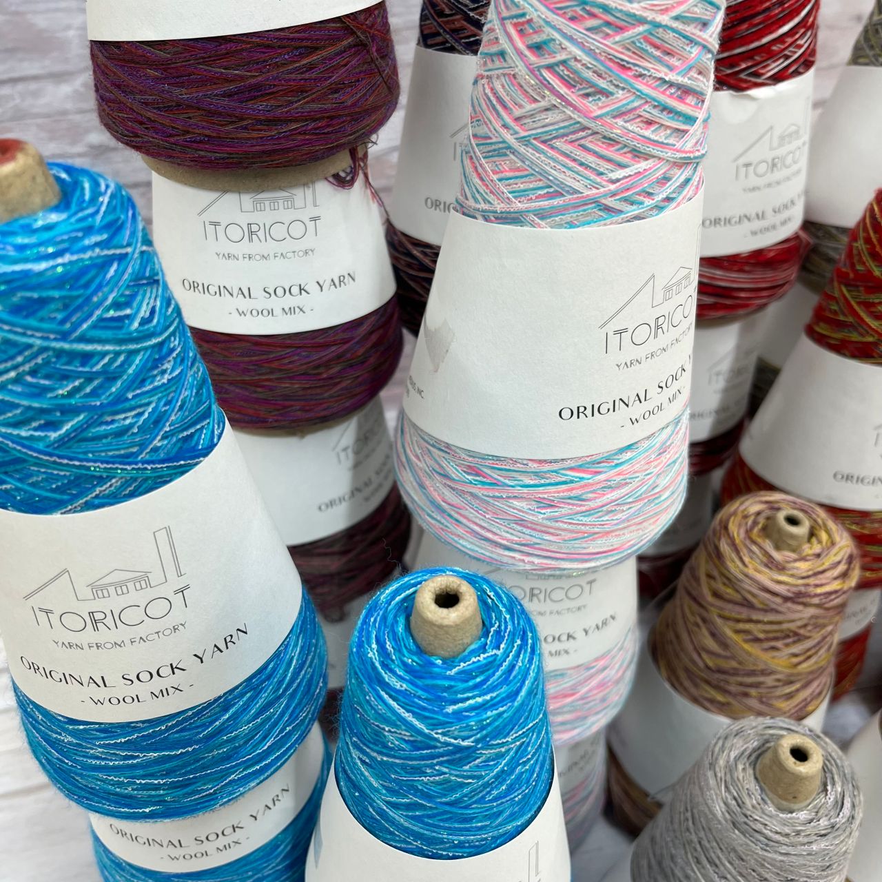 こちらの毛糸は、靴下工場の余っている糸を合わせて作られてます。モヘアMIXも、色とりどりのモヘアやウールを合わせて紡がれた毛糸の為、『一期一会の毛糸』です。