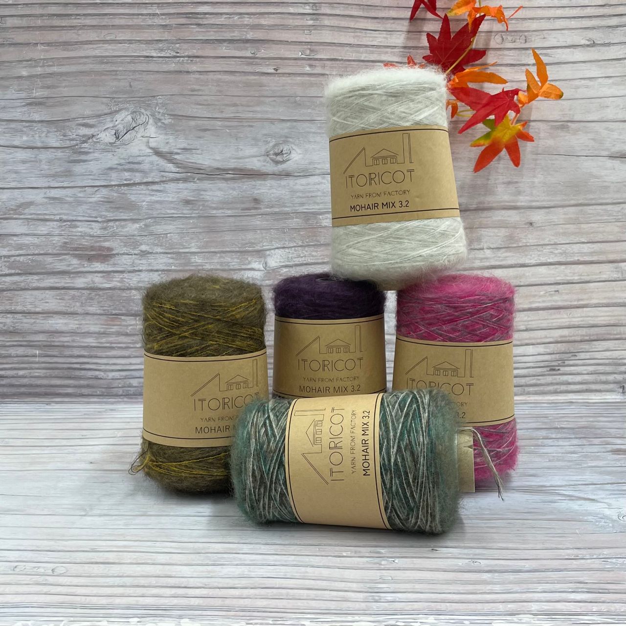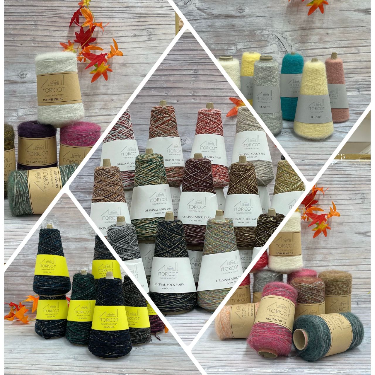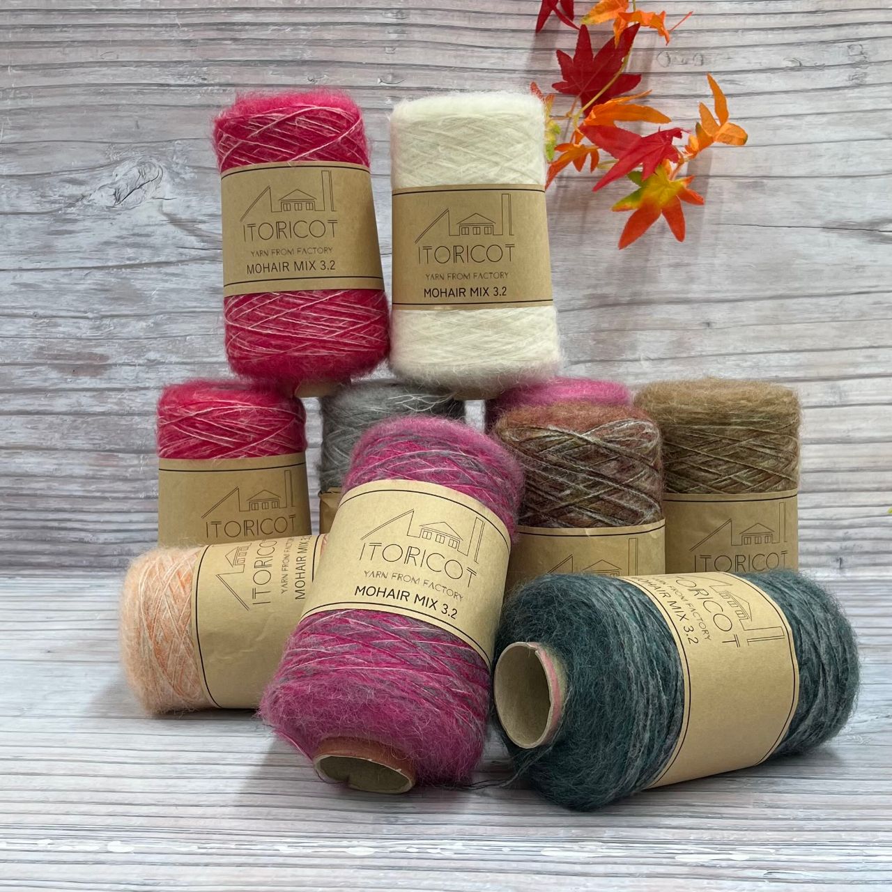 こちらの毛糸は、靴下工場の余っている糸を合わせて作られてます。モヘアMIXも、色とりどりのモヘアやウールを合わせて紡がれた毛糸の為、『一期一会の毛糸』です。