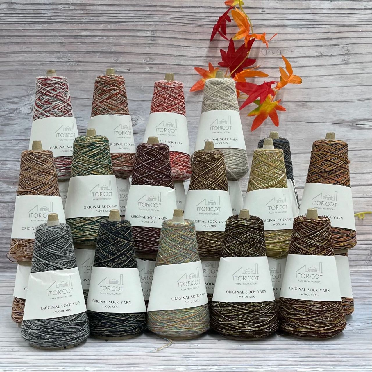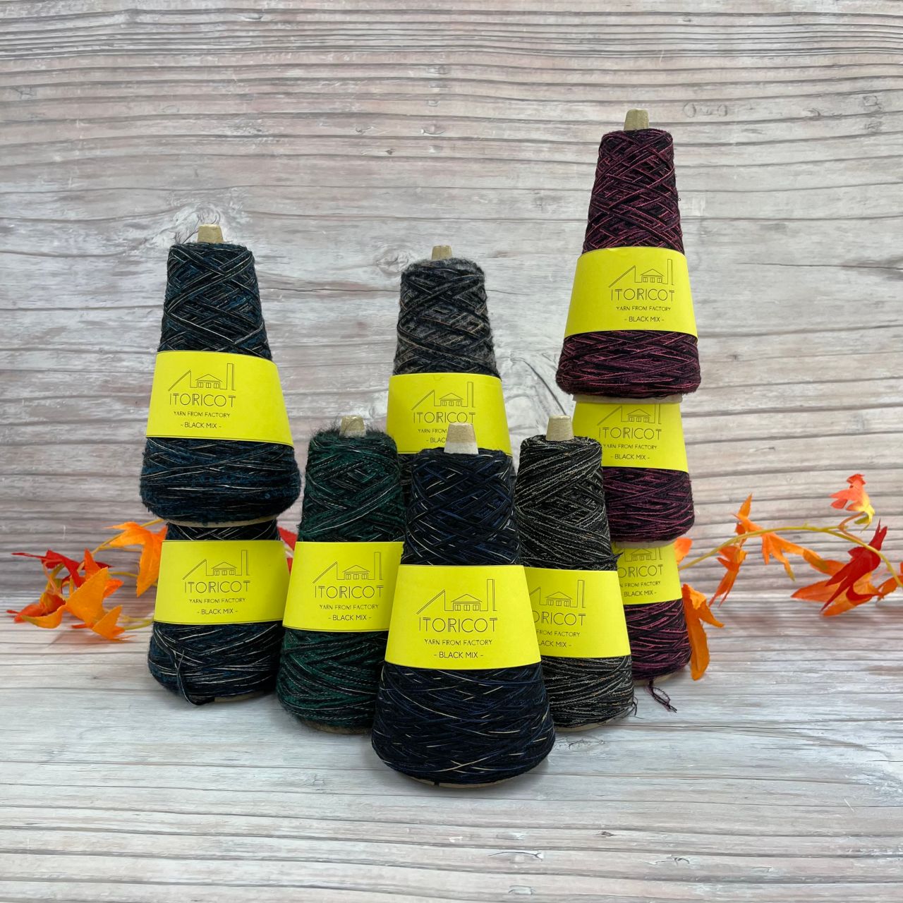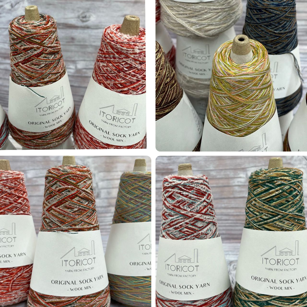 こちらの毛糸は、靴下工場の余っている糸を合わせて作られてます。モヘアMIXも、色とりどりのモヘアやウールを合わせて紡がれた毛糸の為、『一期一会の毛糸』です。