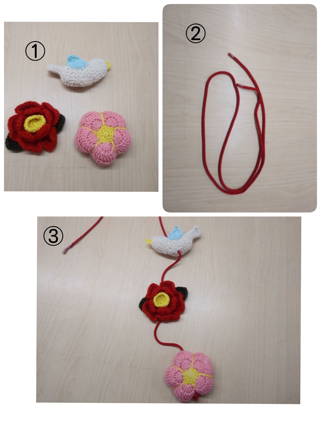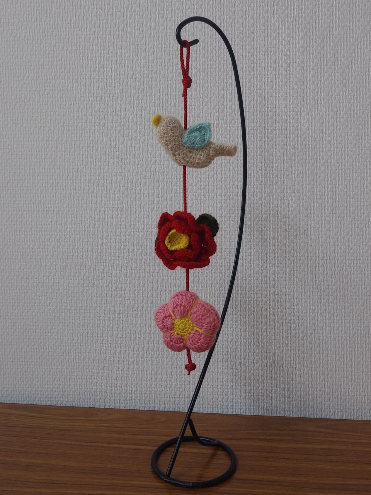 地下一階ということで毛糸でつるし飾りを編んでみました。