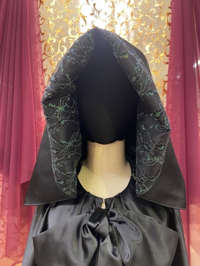 顔を覆う程の大きなフードは軽く折り曲げて被ると内側のレースが映えて顔周りが華やかになります。