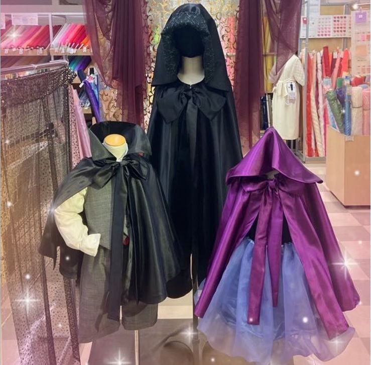 今回はサテン生地をメインに親子で着れるマントを作成しました(*'▽'*)