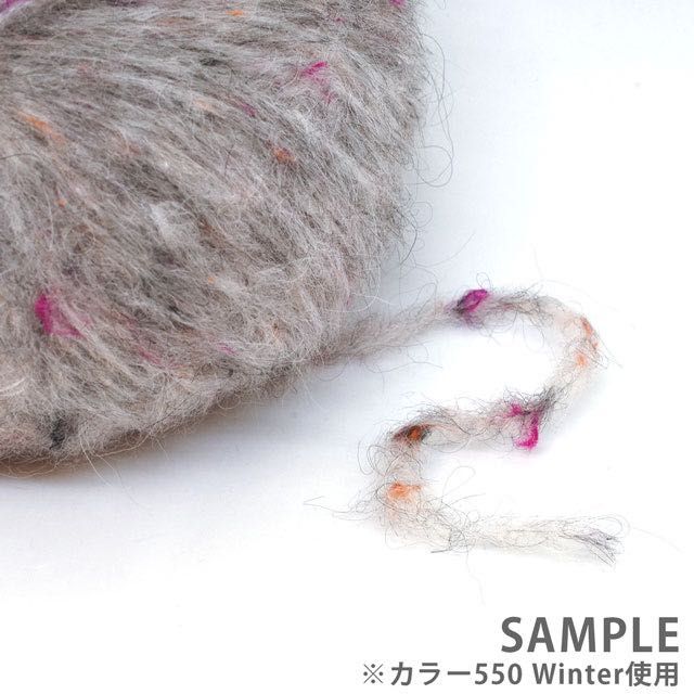 上品な光沢感とカラフルなネップが魅力のふんわり軽いモヘア糸です。