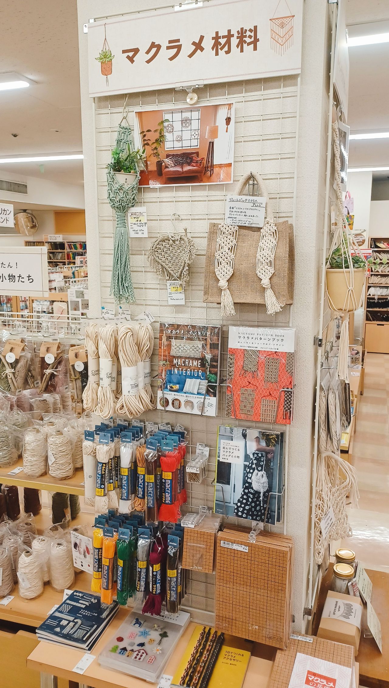 まだまだ進化中のマクラメ材料のコーナーは、のぼりエスカレーターを上がって左手すぐ、4階のこちらの柱周りです。ぜひご注目くださいませ☆☆☆☆
