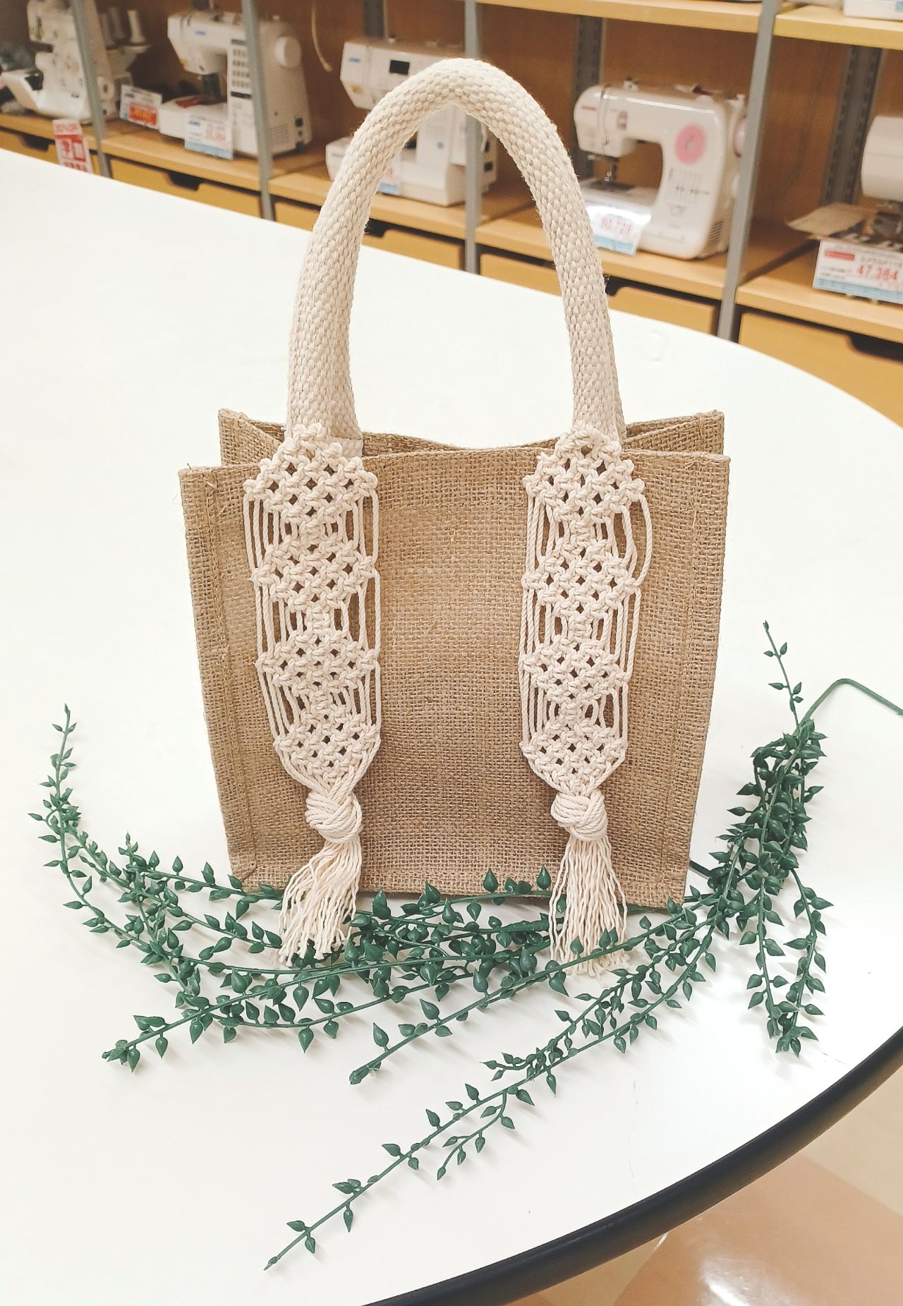 マクラメコーナーにてただいま展示中です。