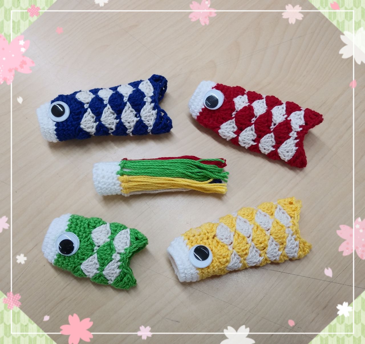 こいのぼりのsizeにあわせて模様編みを 編みます。