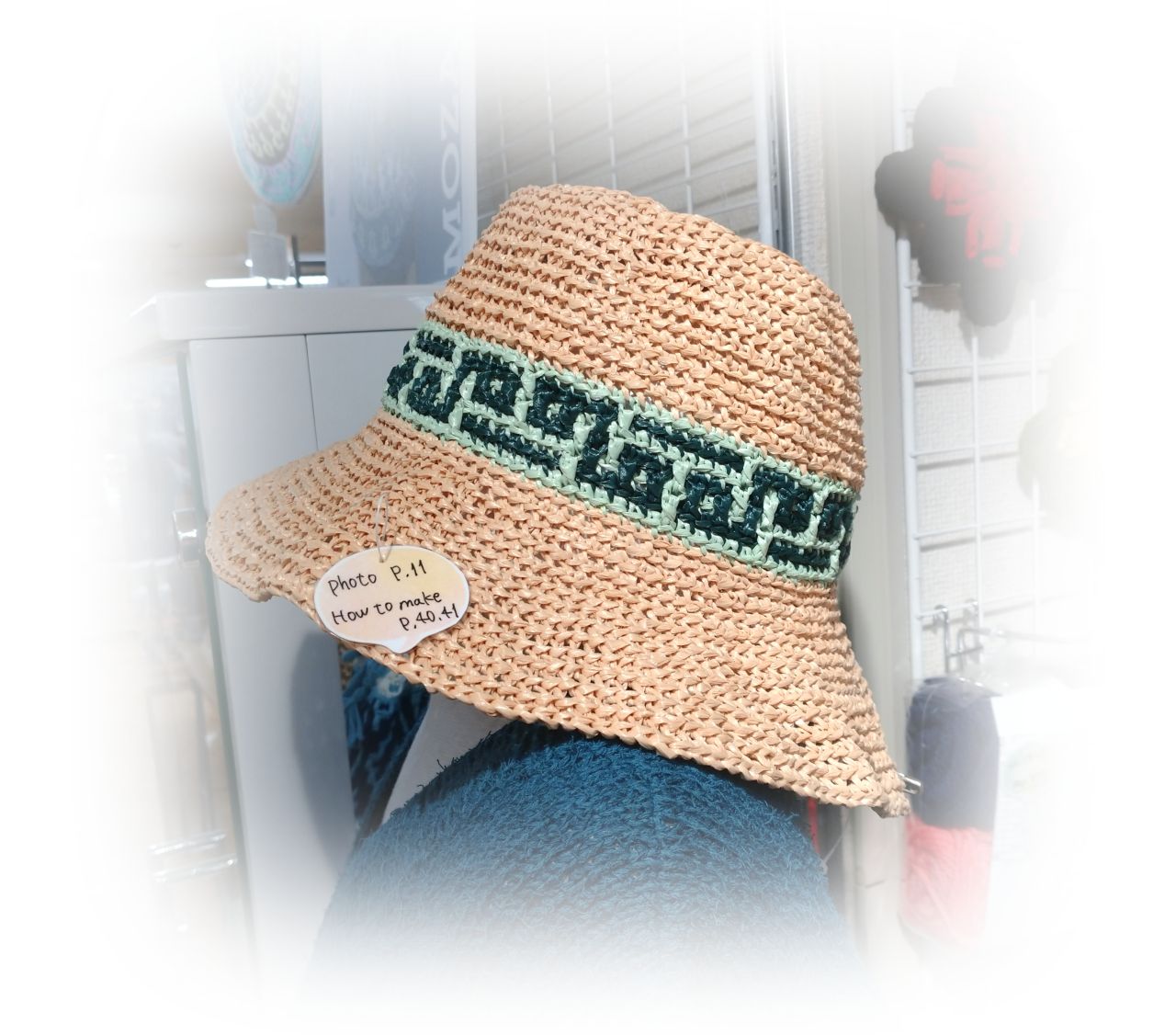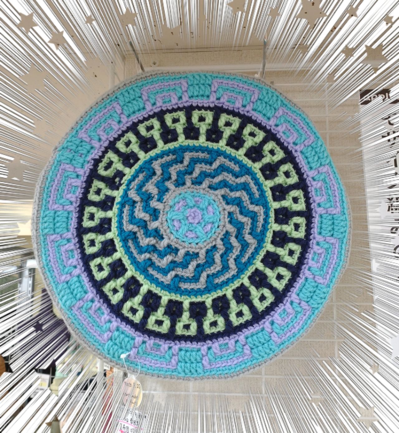 夏にぴったり!モザイク編み作品、展示中です☆