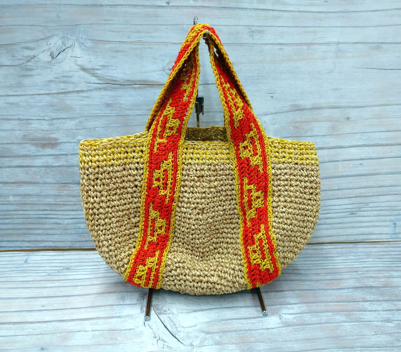 モザイク編みのバッグとこもの」