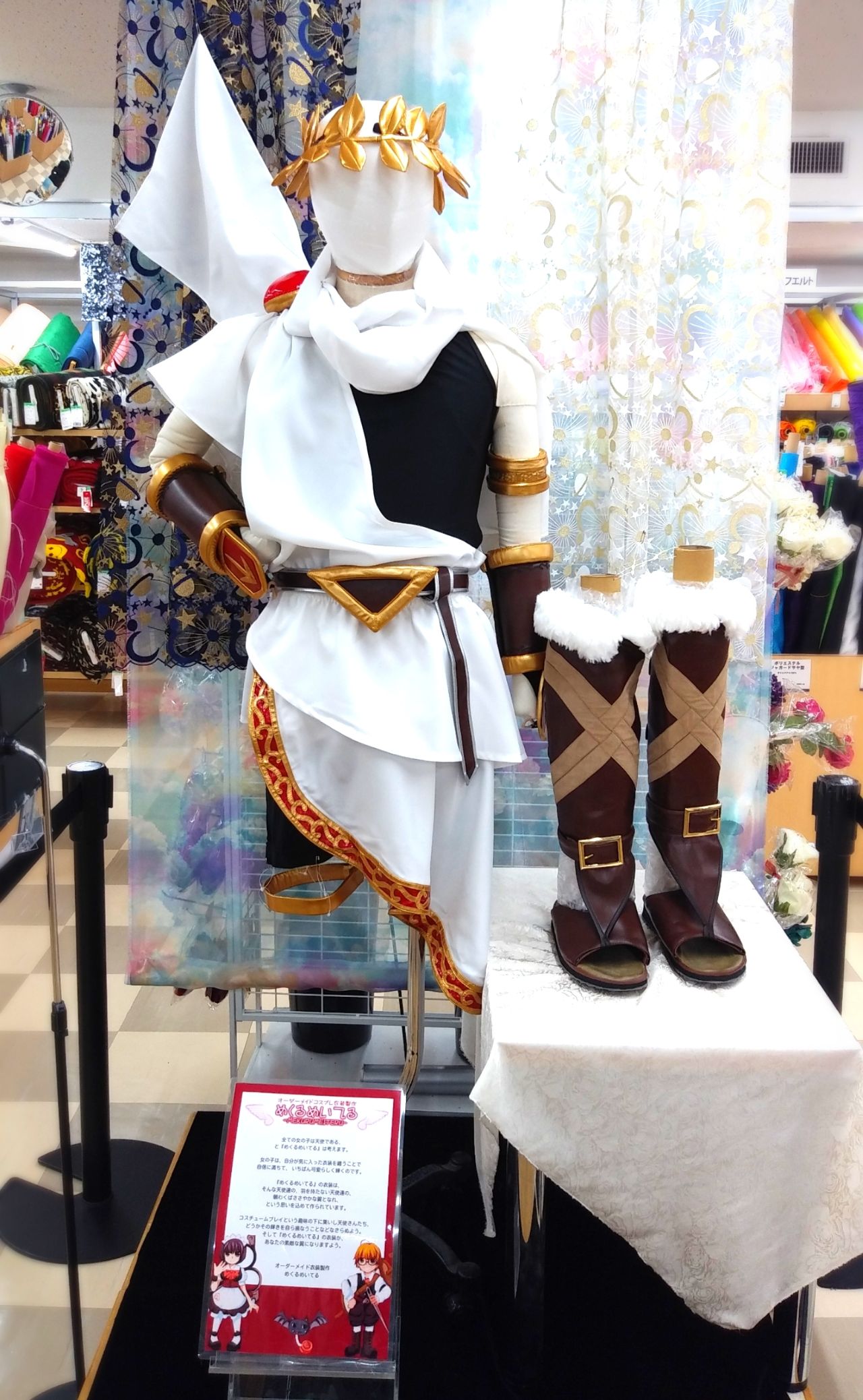 引き続き、『オカダヤの生地でこんな衣装ができました』のコーナーも展開中です(写真は4月撮影)。