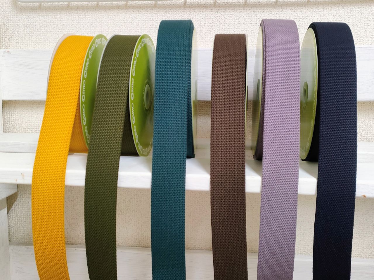 少し硬めで厚みのあるテープなので、丈夫さが必要なものや、大きめなカバン作りに最適です。