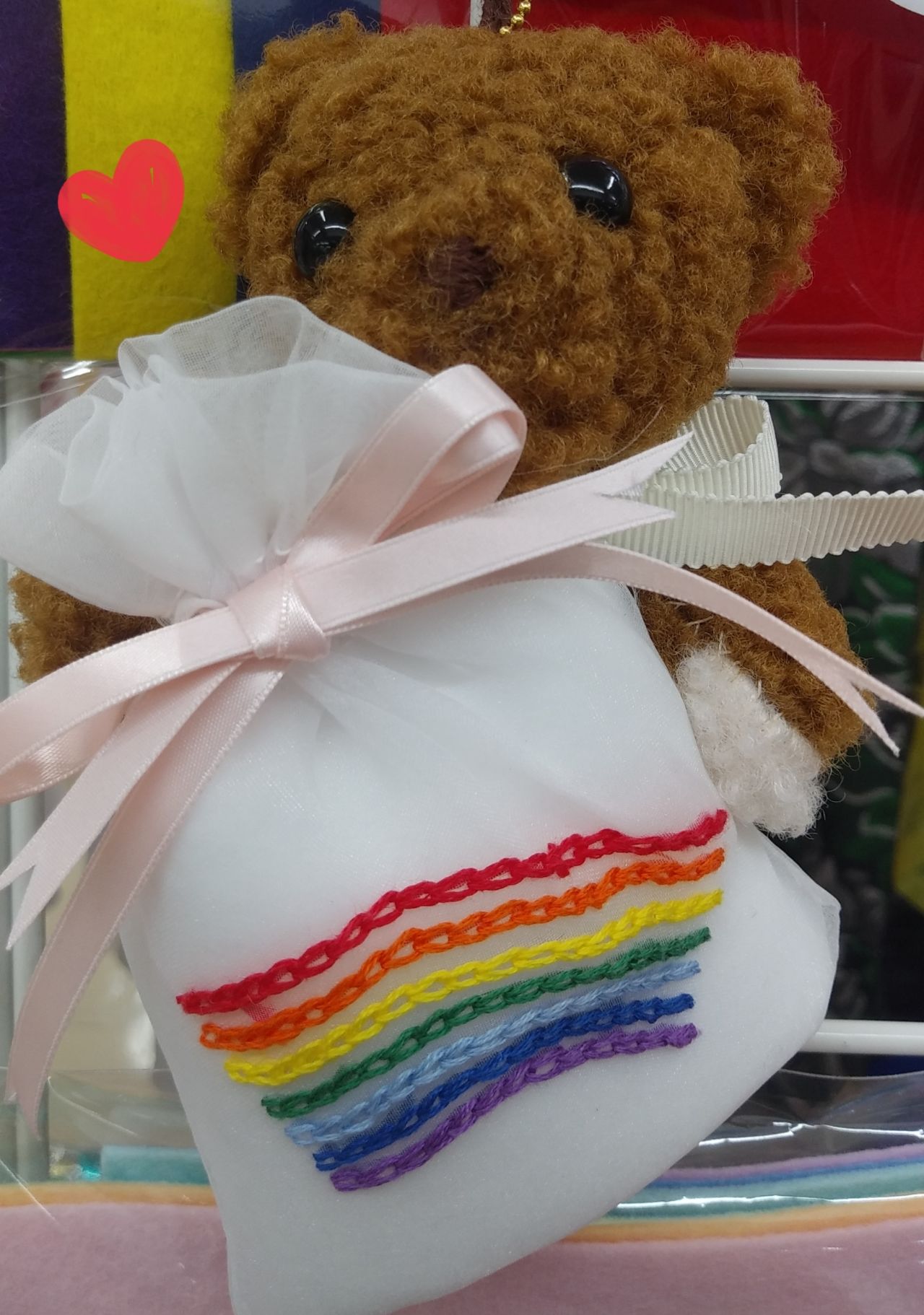 七色のチェーンステッチで『虹』がかかった♪