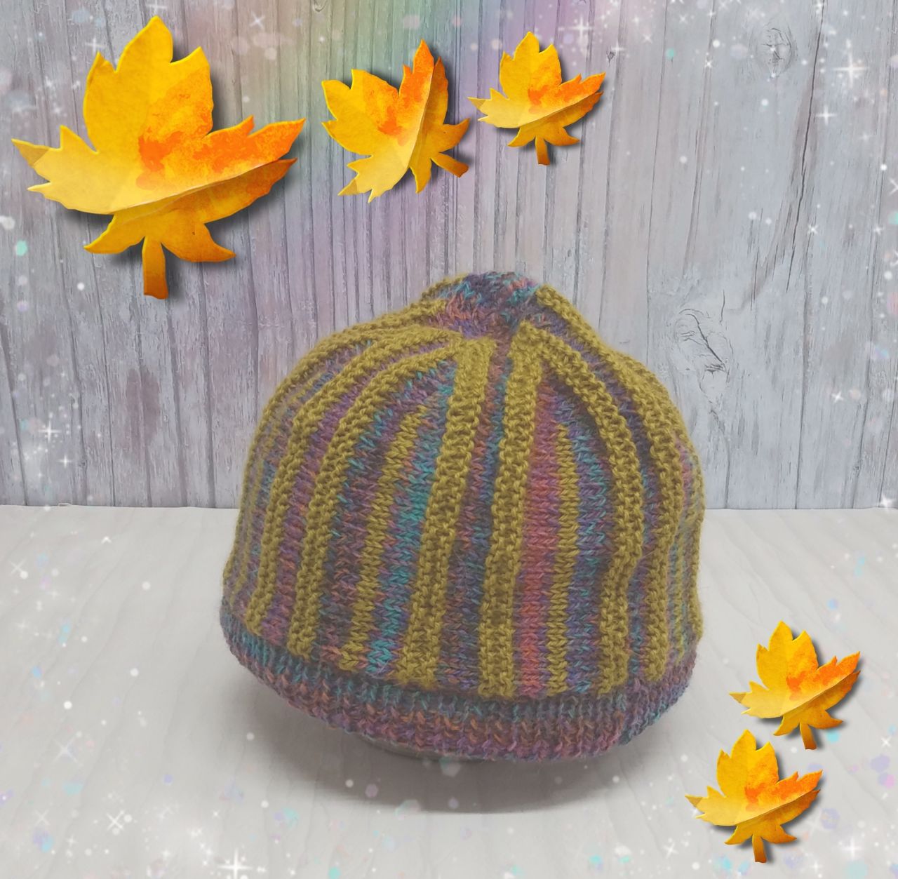 『らみん』のグラデーションとピュアアルパカの優しいカラーが絶妙なバランスで、可愛いらしく、上品なニットキャップの完成です。