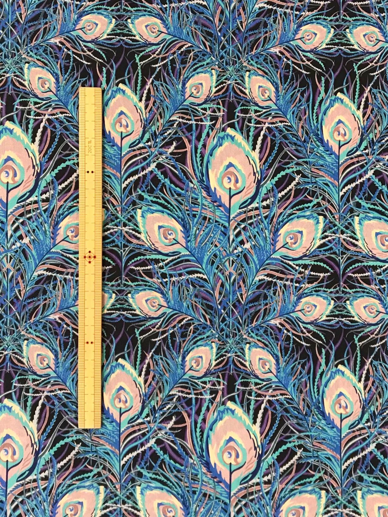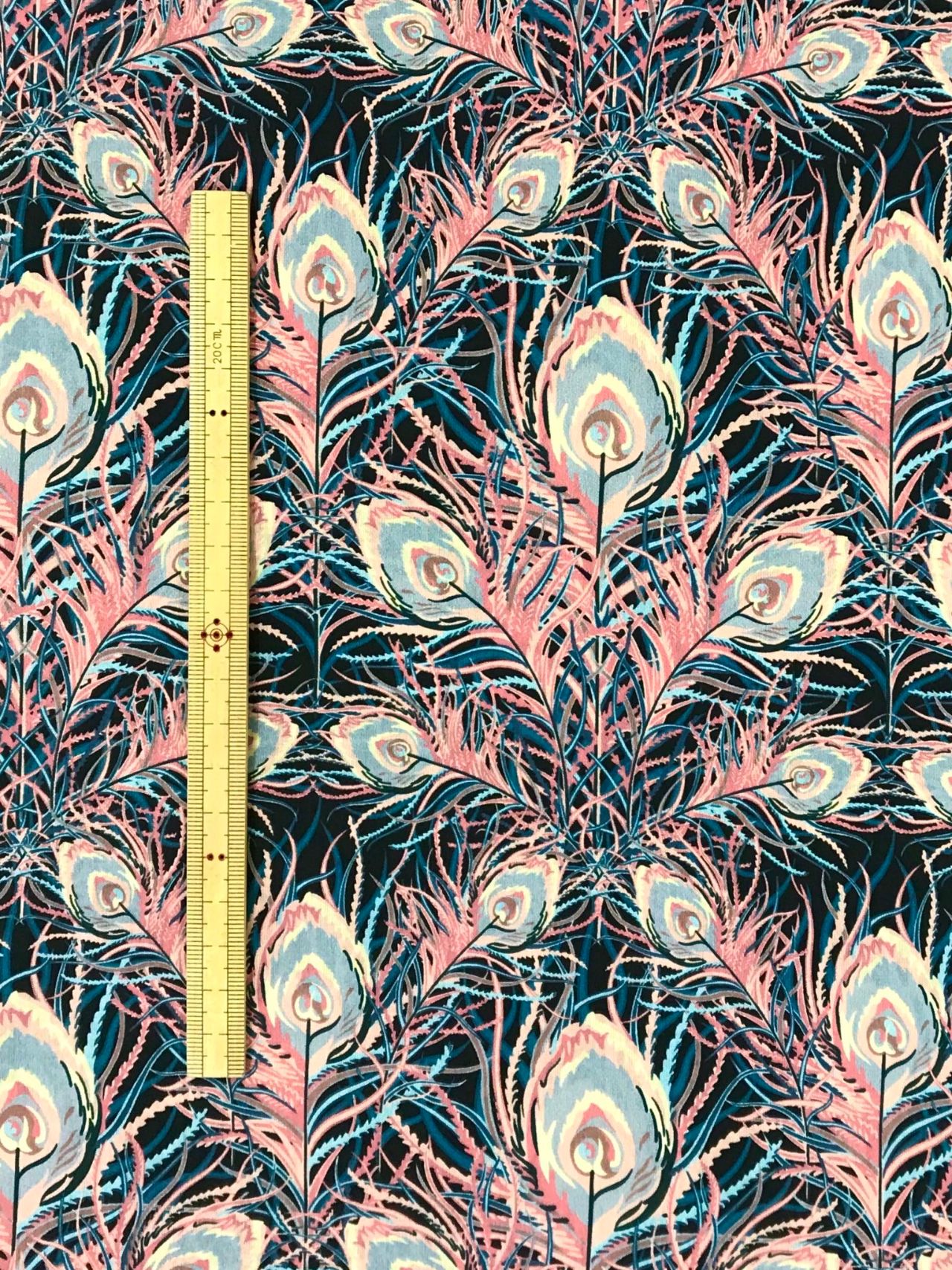 華やかな孔雀の羽のデザインで、ワンピースやブラウスにおすすめなプリントです☆
