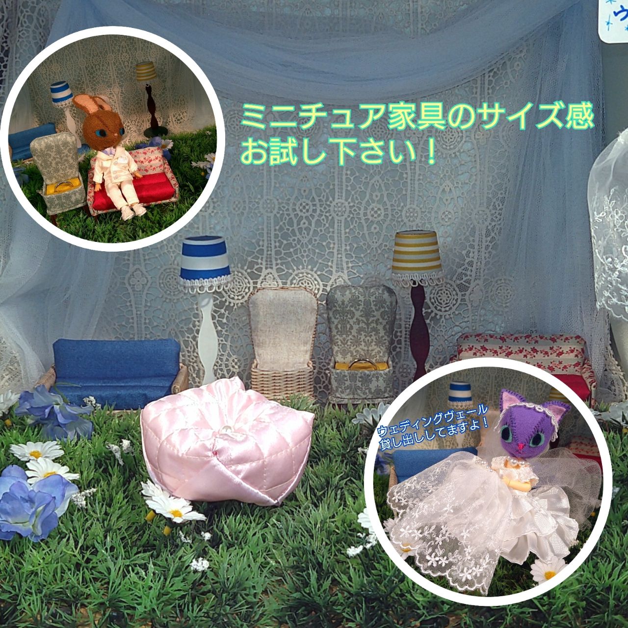 また人気のミニチュア家具キットの完成品もカット台前のドール関連コーナーにて展示中です。